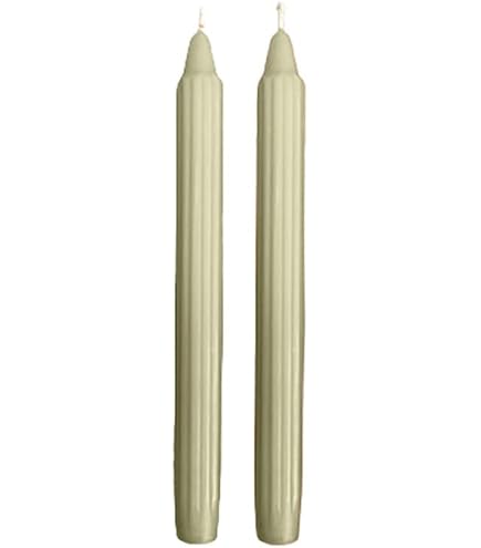 Dorica Set Of 2 Decorative Fluted Candles - Colour Grey Green - Burning Time 8 Hours - Diameter 2.5 Cm Height 25 Cm