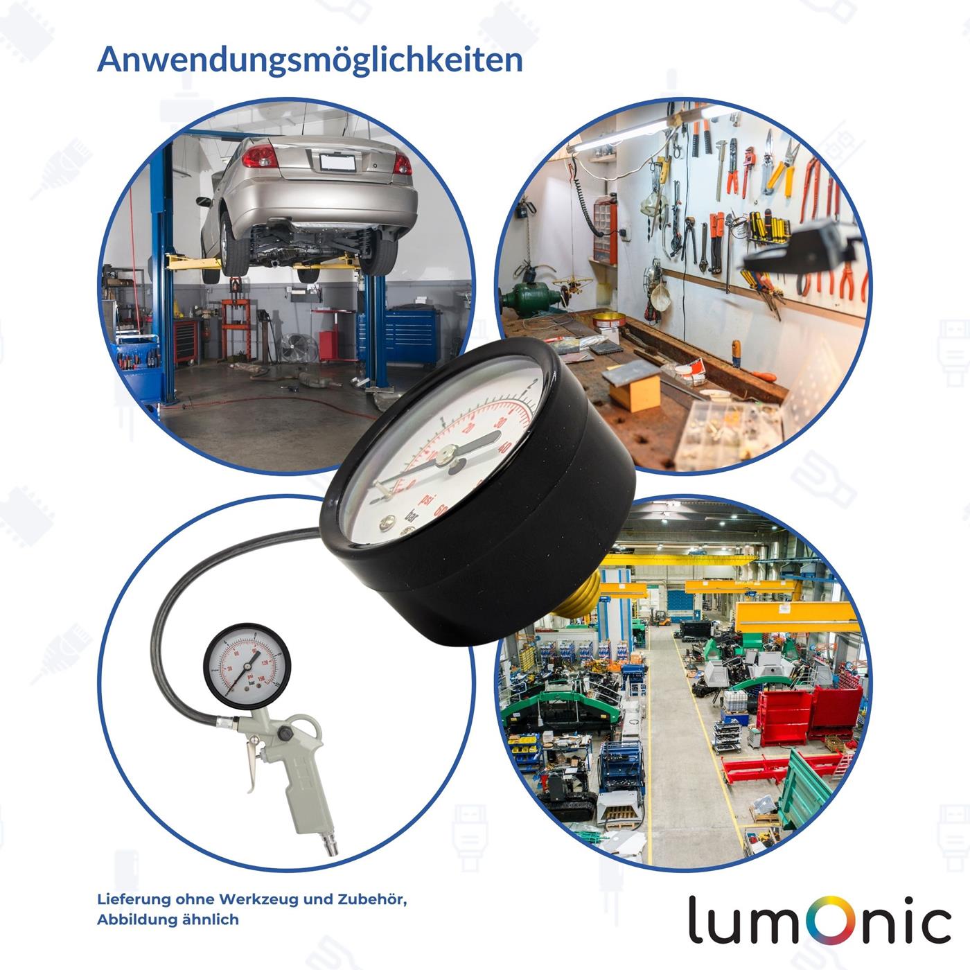 VERSIONI DIVERSE: Attacco inferiore con 1/2 pollice. FACILE LEGGIBILITÀ: Doppia scala (bar e psi) di grandi dimensioni per un controllo chiaro e semplice della pressione. Manometro Gas R32 Manometro 0-10bar 1/2 Dogana Classe 2.5 Collegamento Manometri A Molla Connessione: SottoFilettatura: 1/2 inchGamma: 0-10barDiametro: 60mmNota importante sulla selezione della filettatura:Si noti che una semplice conversione da mm a pollici per le filettature non è sufficiente per trovare una controparte adatta. Nota: l'indicatore stesso non può essere utilizzato sott'acqua; la temperatura di esercizio è compresa tra -25°C e 60°C. Si prega di notare che l'area di stampa del titolo e l'immagine del prodotto possono differire. pressione pneumatico diametro omp manometro aria 90mm psi MATERIALE DI ALTA QUALITÀ: Il manometro ha un alloggiamento in metallo per garantire durata e resistenza. MISURAZIONE ACCURATA DELLA PRESSIONE: Precisione del 2,5% del valore della scala, ideale per un monitoraggio preciso della pressione. Disponibile anche con attacco posteriore.
