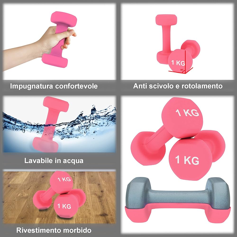 Per I Tuoi Allenamenti Fisici Utilizza Questo Fantastico Set Da 2 Manubri Da 2kg.Realizzati Interamente In Metallo Dal Peso Di 2 Kg Rivestiti Interamente In Neoprene Di Altissima Qualità Materiale Antiscivolo Che Garantisce Un Eccellente Presa Manubrio Durevole: Con il set di manubri 1 kg in neoprene, otterrai un accessorio per la palestra di lunga durata che resisterá a usi intensivi e frequenti, mantenendo la sua forma e funzionalità. Realizzati in neoprene resistente per garantire una lunga durata. Pesi 1 kg con Manubri in Neoprene: Il set include due pesi da 1 kg ciascuno, che renderanno i tuoi allenamenti più impegnativi. Versatilità di Allenamento: Questi pesi sono perfetti per tonificare braccia, spalle, schiena e petto. Pesetti 3 Kg Set Di 2 Manubri Pesi In Vinile, Per Allenamento In Casa O In Palestra, Resistenti E Durevoli Manubri Per Palestra 2 Kg Superficie Antiscivolo: La superficie antiscivolo dei pesetti offre una presa sicura e comoda durante l'allenamento, permettendoti di concentrarti sul tuo esercizio senza preoccuparti di perdere la presa.