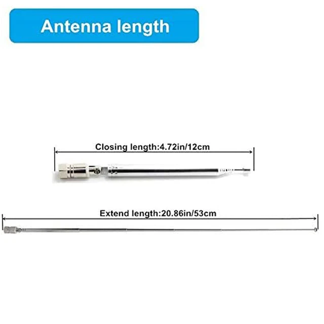 Compra Antenna radio, 7 sezioni antenna telescopica di ricambio con spina F e 4 adattatori, antenna radio per impianto stereo FM FM FM. SPEDIZIONE GRATUITA su ordini idonei Applicazioni: Principalmente per la ricezione wireless o l'uso HiFi. Facile da installare: rispetto alle antenne cablate, le antenne telescopiche sono più veloci da installare e più comode da usare. Stile: 7 sezioni La confezione include: 1 antenna radio FM FM. 3 adattatori. Dispone di 7 sezioni di estensione in acciaio inossidabile, che non sono facili da piegare e resistenti Antenna Radio 2 Pezzi Antenne BNC 25 MHz - 1300 MHz Antenna Telescopica A 7 Sezioni Connettore Maschio BNC Antenna 740 Mm Per Scanner Radio/VHF/UHF/AM/FM Radio Fm Con il design filettato, è sufficiente inserire l'antenna nella presa e serrarla.