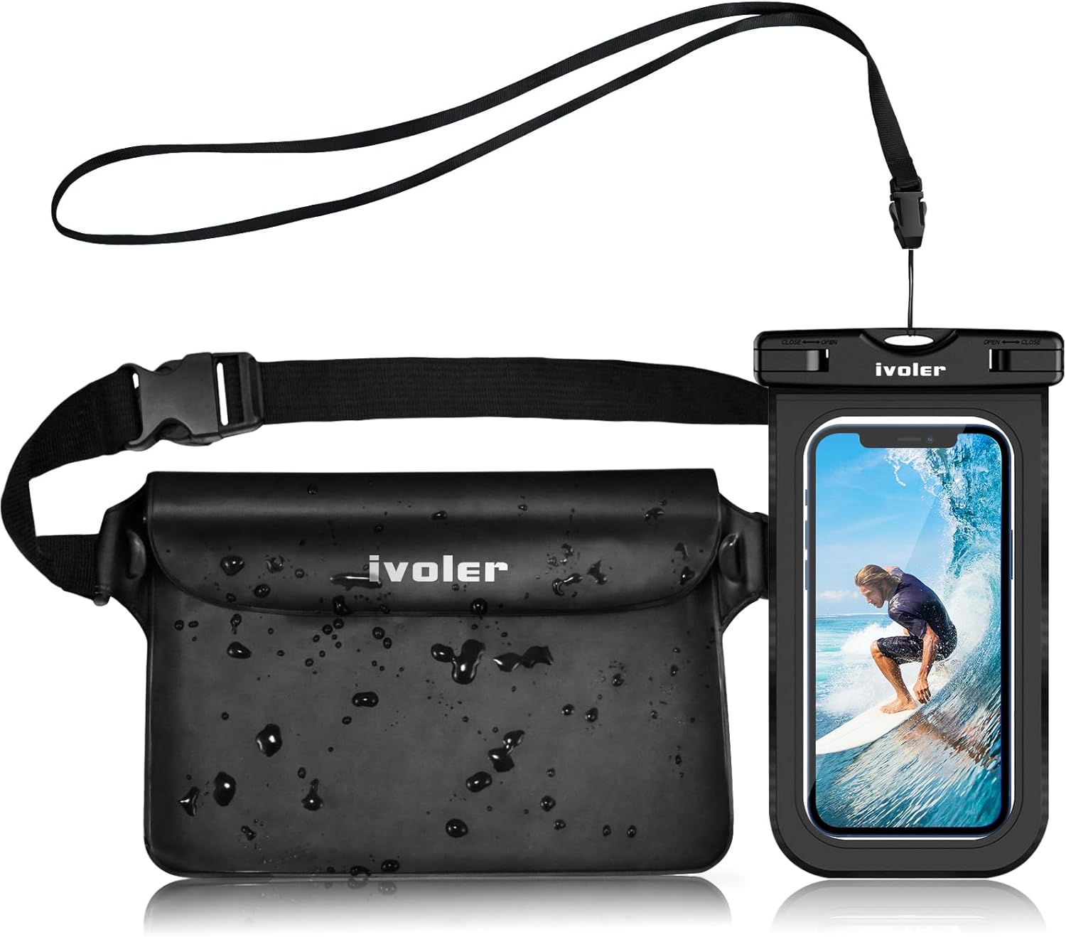 ipow 2 PZ Borsa Impermeabile Marsupio Impermeabile Mare Universale Chiusura a 3 Zip Super Protezione Certificato IPX8 con Cintura Regolabile per Documento Cellulare, Blu e Nero Semitrasparente ... FORETOY Borsa Impermeabile IP68 Mare Custodia Borsa Spiaggia Borsa Impermeabile IPX8 [2 Pezzi], Marsupio Impermeabile Con Tripla Borsa Da Spiaggia 2 Pezzi borsa impermeabile mare accessori, Custodia Impermeabile, marsupio impermeabile con Cinturino Regolabile per Nuoto