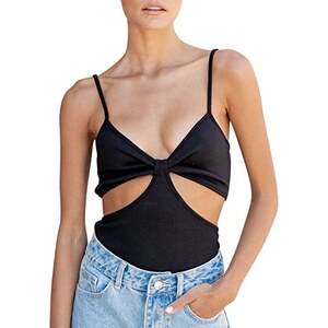 MAMA Canotte Spalline Sottili In Cotone 2 Pezzi - Scollatura Profonda - Senza Maniche - Black