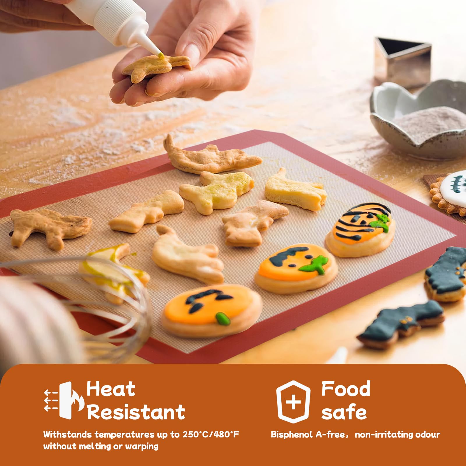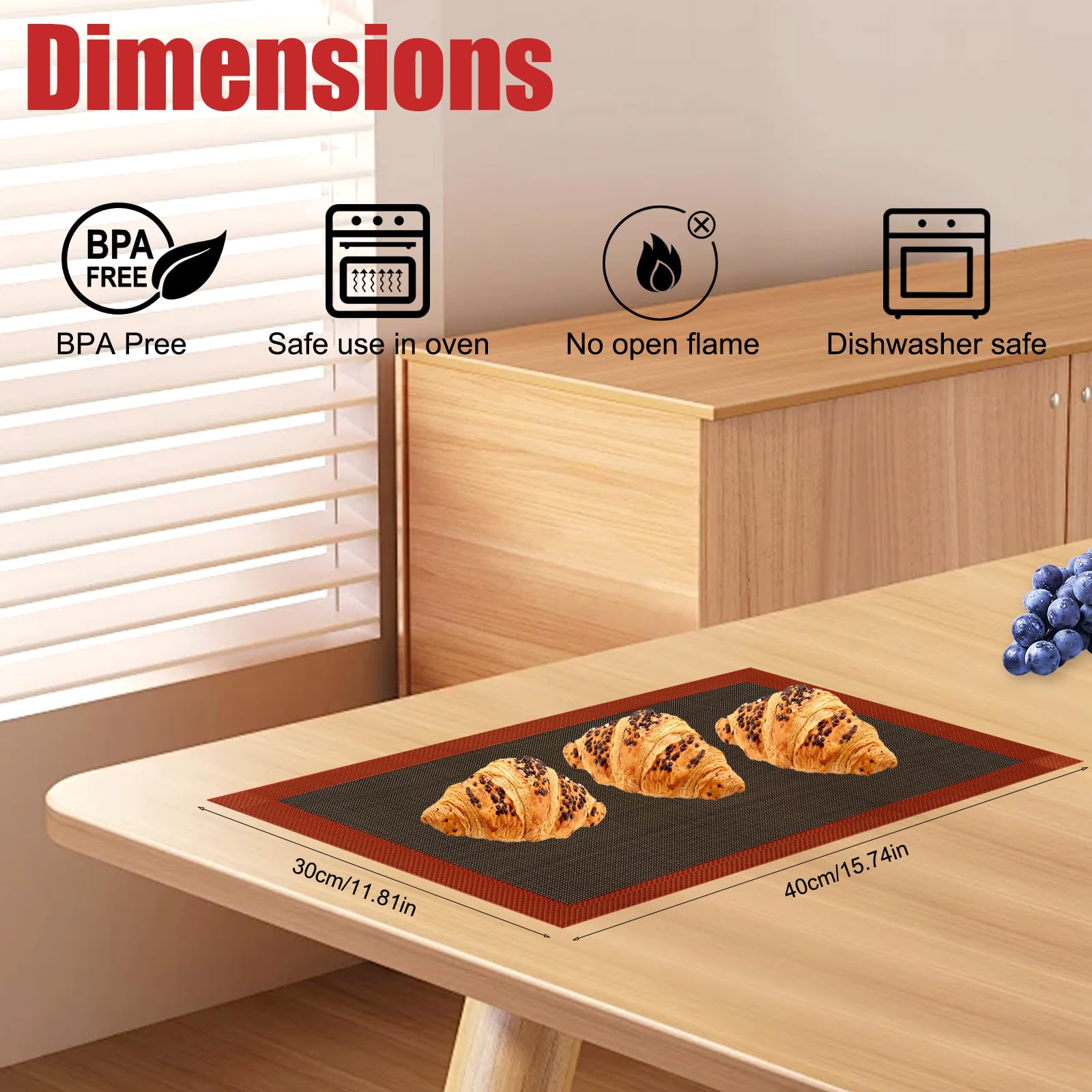Set da 2 Tappetini da forno in silicone Antiaderente, Foglio da Forno per Macaron Pane Biscotti, Carta da Forno Riutilizzabile, Stuoia Pasticceria, Resistente al Calore, Senza BPA (30×21cm, rosso) [ Design Colorato e Più Denso ] - 2 tappetino da forno son Questi tappetino in silicone per fondo del forno sono durevoli e possono essere riutilizzati molte volte, riducendo l'uso di carta forno. Materiali Sicuri: Realizzati in PTFE di alta qualità, questi tappetino silicone alimentare per forno sono sicuri per l'uso quotidiano e garantiscono una cottura sana senza emettere odori sgradevoli, perfetti per una cucina ecologica e sicura. Adatti a Ogni Superficie: I tappetino silicone forno 40x50 cm possono essere facilmente ritagliati per adattarsi a forni, griglie e microonde, garantendo risultati ottimali e personalizzabili in qualsiasi tipo di cottura. Facili da Manutenere: Dopo l'uso, basta lavarli in lavastoviglie o a mano. Tappetini Da Forno Tappetino Da Forno In Silicone, 2 Pezzi, Tappetino Da Forno In Silicone Antiscivolo, Lavabile, Riutilizzabile, Resistente Al Calore, Per Forno A Microonde Leccarda Forno Resistenza al Calore Estremo: Progettati per resistere a temperature fino a 260°C, i tappetino forno riutilizzabile perfetti per barbecue, forni, microonde, e anche come fodere per padelle, offrendo massima versatilità nella preparazione dei cibi.