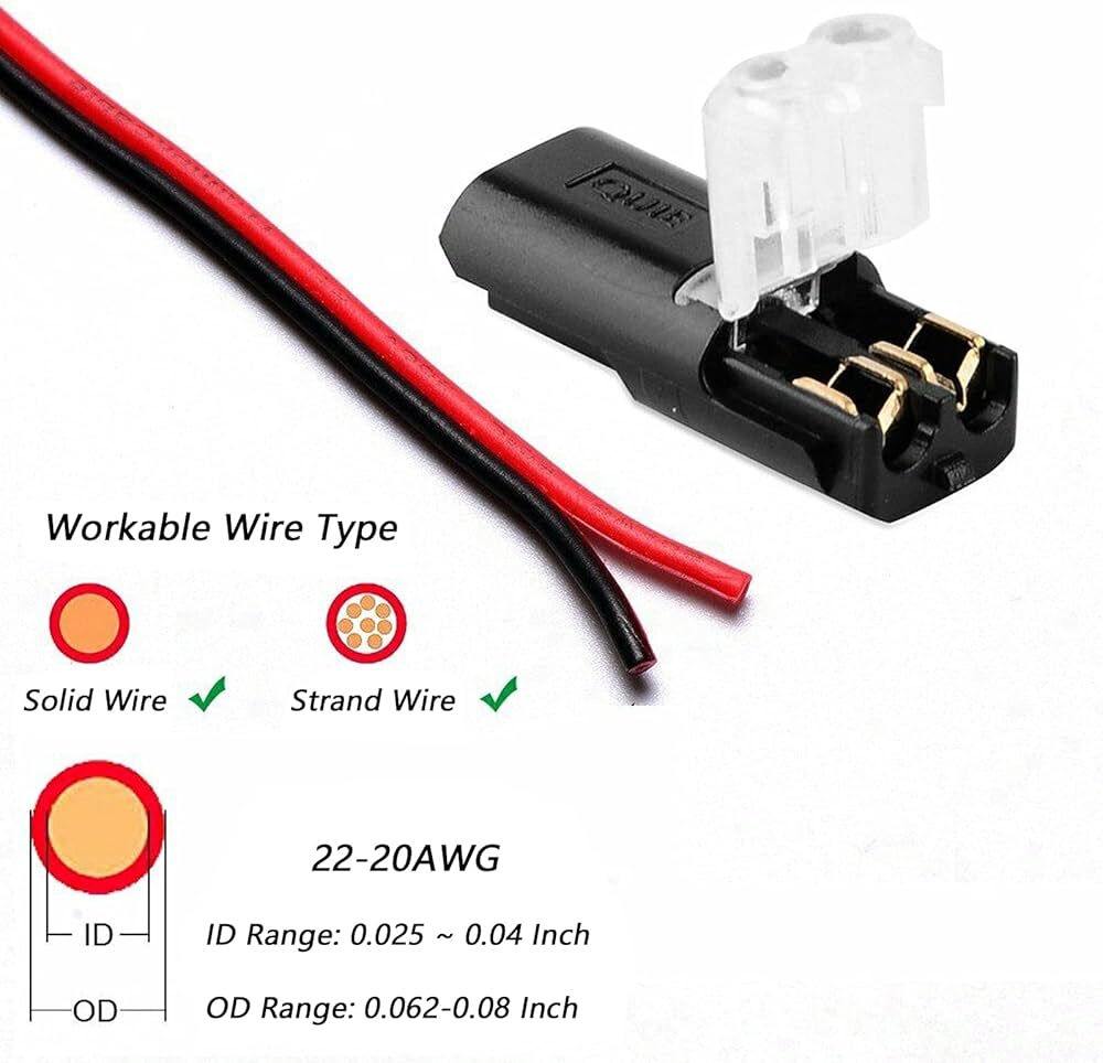 Rubacorrente 12v Auto Connettore Elettrico Rapidi 2 Pin Per 18-22AWG,12 Pezzi Connettori Elettrici 2 Pin Auto Ambiente di lavoro: Temperatura dell'ambiente di lavoro: -20 ℃ ~ 80 ℃, sezione trasversale del filo: 0,35 mm² ~ 0,75 mm (AWG22 ~ AWG18), diametro del filo adatto (incluso lo strato isolante): Φ1,5 mm ~ Φ 2,1 mm. Ampiamente utilizzato: i connettori dei cavi collegabili sono ampiamente utilizzati in vari cablaggi CC a bassa tensione, a bassa perdita, ideali per la maggior parte dei veicoli, audio, video, altoparlanti e altri dispositivi. 12PCS CONNETTORE ELETTRICO Rapidi,18-22Awg Tipo D Connettori, 2 Pin Connettore C - EUR 11,99. IN VENDITA! ?[CONNETTORE DI CABLAGGIO RAPIDO]Connettore rapido senza saldatura tipo D, nuovo design inter-plug, 186820374372 Connettore a 2 pin: il Connettore Elettrico Rapidi adotta un design di conduttori da 2 a 2, non è necessario spellare i fili, basta inserire e comprimere i fili per una connessione rapida, semplice e comoda da usare.
