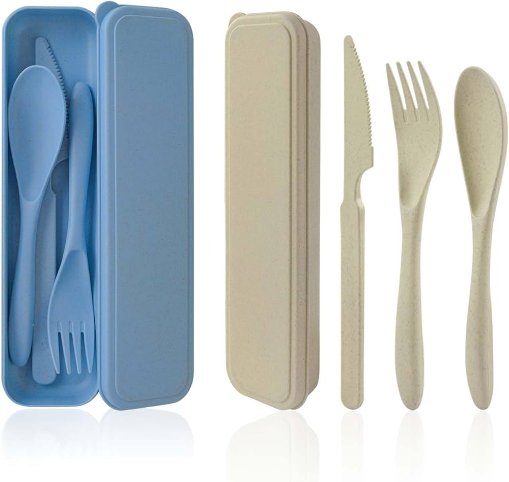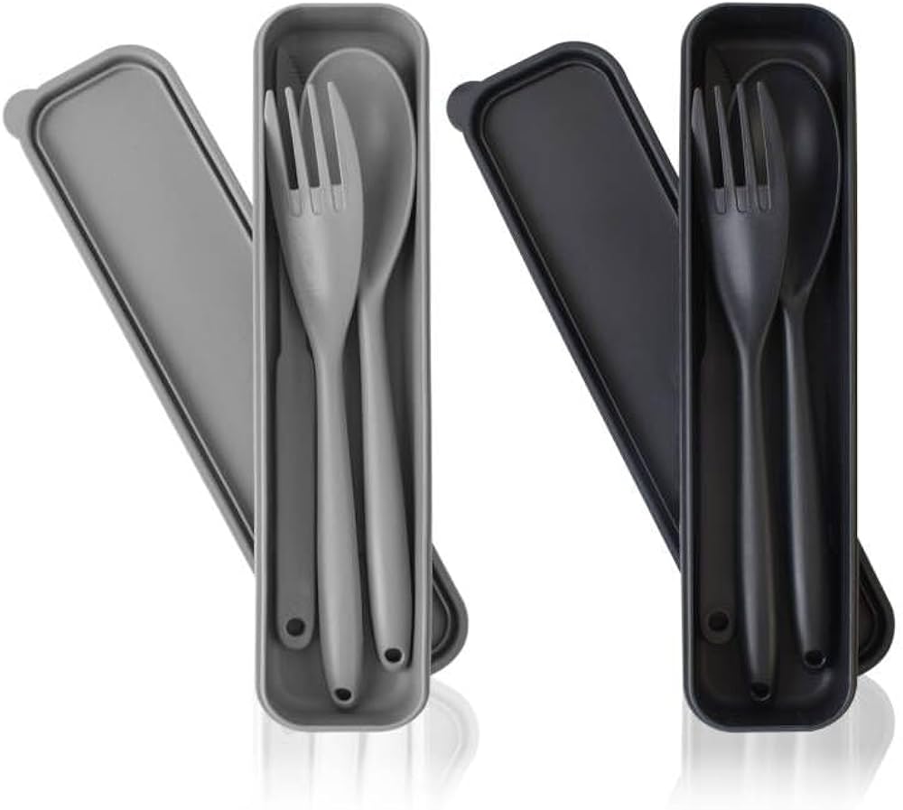 Portaposate Da Viaggio Set Di 2 Posate In Plastica Con 2 Organizer Per Posate, Forchette, Cucchiaio, Posate Da Viaggio Con Scatola, Set Di Posate Da Campeggio Portatile, Riutilizzabile, Adatto Per Campeggio, Picnic