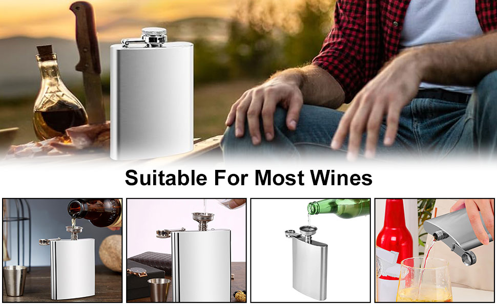 ♥【Design portatile】La fiaschetta tascabile si adatta al palmo della mano, può essere facilmente riposta in borsa o tasca. Inoltre, include due tazze in acciaio inossidabile, che puoi utilizzare ovunque e in qualsiasi momento. Fiaschetta Whisky 2 Set Fiaschetta Tascabile In Acciaio Inox,8oz/227ml Fiaschetta Fiaschetta Acciaio Per Vino ♥【Acciaio inossidabile di alta qualità】La fiaschetta per liquori è realizzata in acciaio inossidabile di alta qualità 304, con beccuccio tondo, liscio e delicato, ecologico e non tossico, resistente alla corrosione. ♥【Con imbuto e tazze】Con una capacità di 7 once (207 ml), la tascabile fiaschetta è dotata di un piccolo imbuto per facilitare l'aggiunta di liquido. Può essere utilizzata come regalo di nozze, regalo per uomo, regalo per la festa del papà, regalo di laurea e altro ancora! Trova una vasta selezione di Fiaschetta acciaio a altri accessori da cucina per bar e vino a prezzi vantaggiosi su . Scegli la consegna gratis per riparmiare di più. ... Fiaschetta di acciaio inossidabile Silver 9 oz 255 ml Whisky Alcool Vino Grappa Nota: pelle esterna, non immergere in acqua. Il tappo è fissato con una graffetta per evitare di perderlo. Leggera e compatta, comoda da portare ovunque.