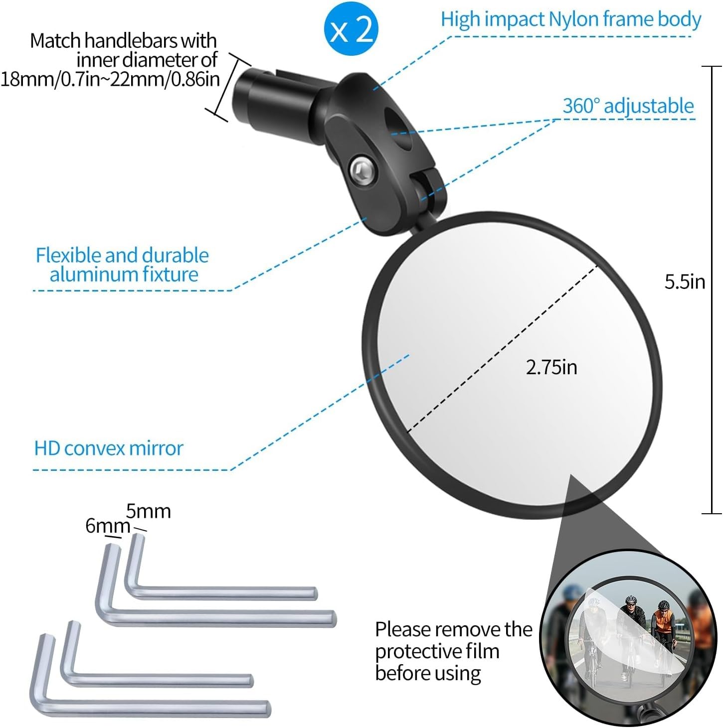 Rispetto agli specchi piatti, gli specchi convessi hanno un campo visivo più ampio, quindi puoi vedere un'area più ampia dietro di te per una maggiore sicurezza. Contiene: 2 specchietti per manubrio bicicletta + 2 chiavi a brugola incluse. Gli specchi per biciclette HD con design convesso hanno un campo visivo più ampio rispetto ai normali specchi piatti, il che rende più sicuro guidare su strade complesse. Si prega di verificare le dimensioni prima dell'acquisto. E Bike Arkham Specchietto Retrovisore Bici, Specchietti per Bicicletta, HD Specchio Bici, 360° Regolabile Specchietti Retrovisori per Bicicletta per Mountain Bike Ciclismo Bici Specchietti Moto Manubrio --Girevole a 360°: il giunto cardanico tra gli specchi ha una struttura speciale e un forte attrito, che non solo garantisce una rotazione flessibile, ma mantiene anche la stabilità durante la guida. Nota: si prega di rimuovere la pellicola protettiva prima dell'uso per un migliore rilevamento della strada. Specchietto Retrovisore Per Bici Specchietti Retrovisori Bici 2 Specchietti Retrovisori Per Bicicletta Regolabili A 360 Gradi 747089 Specchietto Bici Elettrica Funzione: -Gli specchi per biciclette utilizzano piccoli specchi microconvessi realizzati con una tecnologia speciale con un ampio campo visivo. Design: girevole a 360° e pieghevole a 180°, lo specchio per bicicletta può essere regolato su qualsiasi angolazione per osservare meglio il traffico. Colore: cornice nera, lenti argentate Dimensioni: adatto per il montaggio su manubri da 17,8 – 22 mm. Specifiche: gli specchietti retrovisori per bicicletta sono adatti a tutti i tipi di biciclette con un diametro interno del manubrio da 17,8 mm a 22 mm. Qualità premium: gli specchietti per bicicletta hanno specchietti lucidati per una visione chiara e impediscono all'acqua piovana di attaccarli. -I prodotti sono adatti per la maggior parte dei modelli, come mountain bike, bici da strada, biciclette pieghevoli e così via. Il materiale acrilico è resistente agli urti e non facile da rompere.