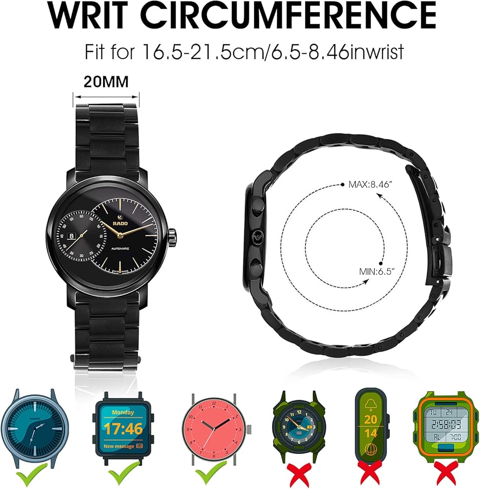 La superficie finemente lucida evidenzia lusso, nobiltà e durata. Cinturino in acciaio inossidabile: il cinturino Cobee è realizzato in acciaio inossidabile di alta qualità. Perni Cinturino Orologio Cobee Cinturini Per Orologi In Metallo Di Ricambio Con Fibbia In Acciaio Inossidabile 20 Mm/22 Mm (1 Barra A Molla + 4 Molle, 1 Regolatore Per Orologio + 3 Aghi Di Ricambio Cinturino Orologio Acciaio Spazzolato sulla parte superiore e lucidato sui lati del cinturino si abbina perfettamente alla maggior parte degli orologi meccanici e al quarzo realizzati in anse piatte. Si adatta a quasi tutti i polsi: 16,5-21,5 cm, che consente una regolazione personalizzata tramite lo strumento di rimozione delle maglie fornito. Questo elenco non è conclusivo e se ha alette standard e alette larghezza di 20 mm o 22 mm. cobee Cinturino di ricambio in metallo, chiusura rapida, in acciaio inox, per uomo, larghezza 22 mm, cinturino resistente con 1 barra a molla + 4 perni auricolari, 1 regolatore orologio + 3 aghi, Nero Artigianato sofisticato ma facile da installare, molto comodo da indossare. Doppia chiusura speciale e lunghezza regolabile: il nostro cinturino ha una speciale fibbia a doppia chiusura. Adatto per la maggior parte degli orologi universali: prima dell'acquisto si prega di consultare la nostra descrizione del prodotto qui sotto per un elenco di molti degli orologi relativi ai nostri cinturini per orologi saranno adatti.