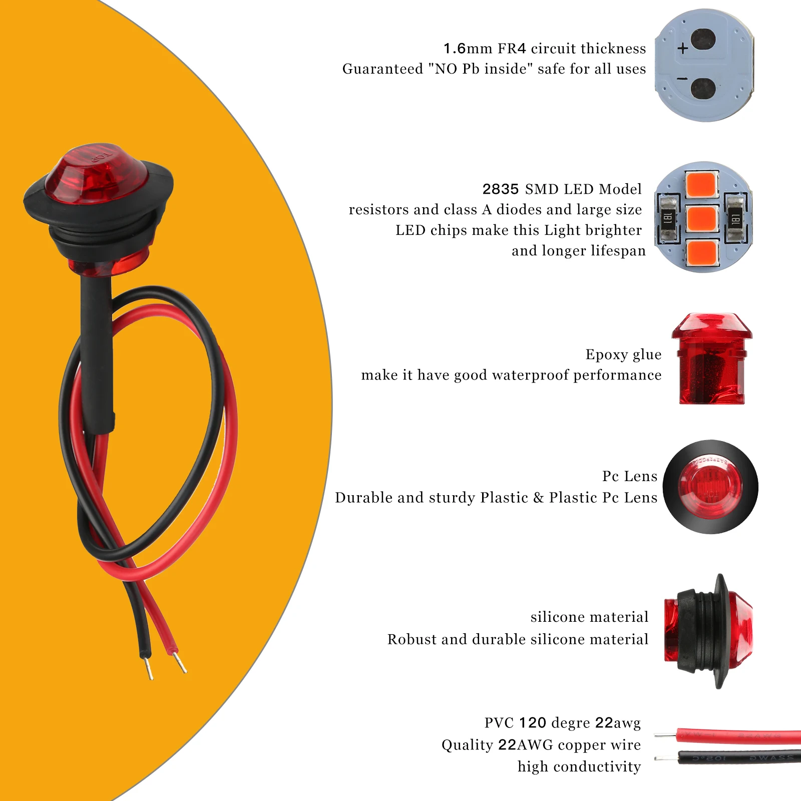 Questo articolo: 10 luci di posizione a 3 LED, 12 V, 24 V, per camion, autobus, trailer, indicatore di luce laterale, in 3 colori (rosso, giallo, bianco) (giallo Luci Ingombro Rimorchio 20 Pz 24 Volt LED Luci Di Ingombro Laterali Per Camion LED Camion Luce Bianco 9 SMD LED Auto Auto Bus Camion Indicatore Luce Del Rimorchio Luci Led Per Camion 24v Adatto per la maggior parte degli autobus/camion/rimorchio/camion, si prega di assicurarsi che le dimensioni prima dell'acquisto