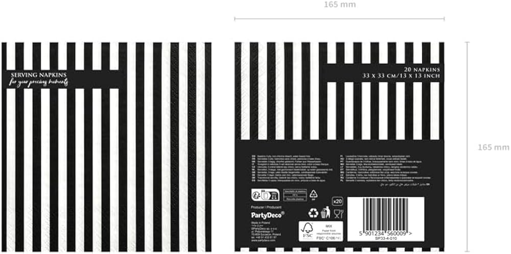 🎊[CELEBRAZIONE] Addobba la tua tavola come si deve, con i tovaglioli di carta a righe bianche e nere ogni occasione sarà una festa speciale (set da 20) Con il set da 20 tovaglioli a righe bianche e nere potrai decorare la tua tavola in modo elegante e moderno, così ogni compleanno, anniversario o party sarà un'occasione speciale! Compra 20 Tovaglioli di Carta a Righe Bianche e Nere, Tovagliolo Doppio Velo a Strisce Bianco Nero per Festa Compleanno Anniversario Party a Tema - 33x33 cm (Confezione da 3). SPEDIZIONE GRATUITA su ordini idonei Tovaglioli Bianchi 20 Tovaglioli Di Carta A Righe Bianche E Nere, Tovagliolo Doppio Velo A Tovaglioli In Offerta ✅[MATERIALI] I tovaglioli sono realizzati in carta doppio velo di alta qualità, morbidi e resistenti, antistrappo, perfetti per ogni occasione 👀[NOTA] I tovaglioli sono spediti in set da 20, senza nessun altro accessorio da festa incluso. Sono monouso e non sono lavabili in lavatrice ne in lavastoviglie. ✨[OCCASIONE] I nostri tovaglioli a righe bianche e nere sono adatti per tutte le occasioni di festa come compleanni, anniversari, party a tema e tanto altro ancora. Descrizione Prodotto Decora la tua tavola con tutto il fascino del Black and White!