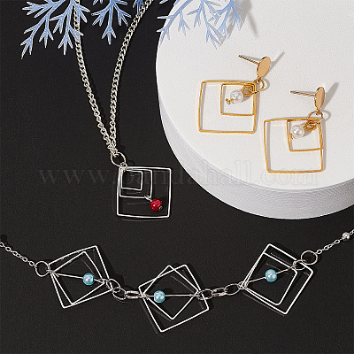 PH PandaHall 200pcs Ciondoli Con Cornice Quadrata Anelli Di