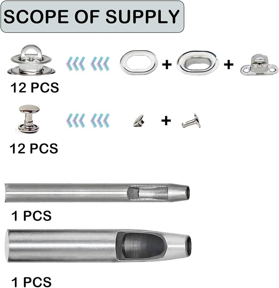 ed è adatto per abbigliamento, scarpe, cinture, borse o altri oggetti artigianali. Spingi l'occhiello, metti la controparte, posiziona il tutto tra l'utensile a percussione e l'anello di fissaggio, colpiscilo di nuovo e il gioco è fatto OCCHIELLO STRUMENTO KIT, 400 Pezzi Grommet Kit Occhielli in Metallo per Teloni B - EUR 23,73. IN VENDITA! La confezione contiene: Occhiello Strumento Kit include un perforatore, un mandrino abbinato 315809625397 Occhielli Per Borse Occhiello Strumento Kit, 200pcs Grommet Kit, Occhiellatrice Per Teloni Occhielli Per Tende Ideale per accessori fai da te e ferramenta Abbastanza per l'uso quotidiano Sono migliori degli elastici per il fissaggio del telone Articolo della confezione: il set di occhielli twist lock per teloni include 2 perforatore e 20 set di occhielli twist lock e una scatola di immagazzinaggio. Facile da usare: Rinforza il punto, segnalo, metti l'utensile per perforare, colpiscilo, fai un buco.