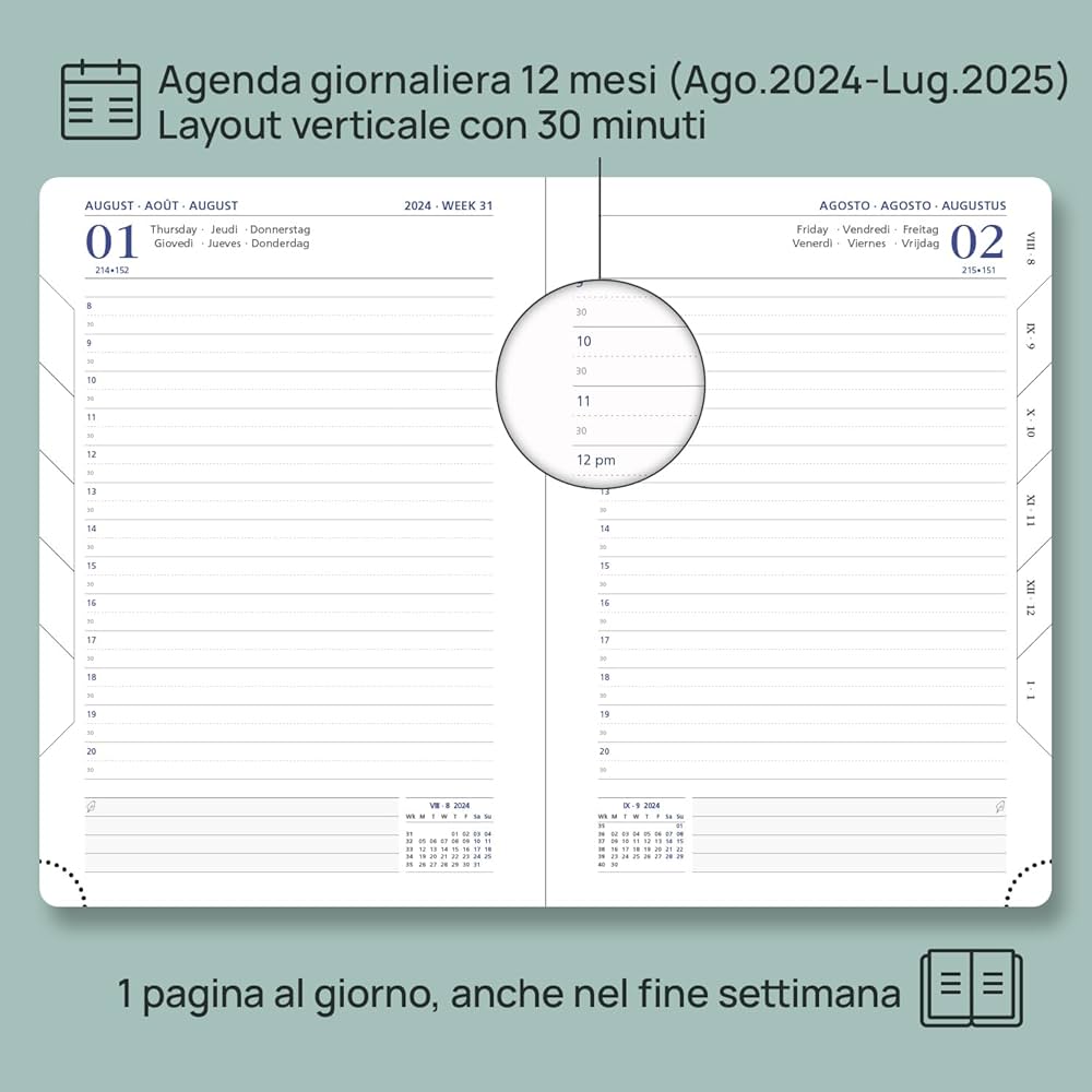 Poprun Planner POPRUN Agenda 2025 Semana Vista Espiral 26,5 X 21,5 Cm, Una Página Por Agenda Giornaliera 2025 1 PIANO MENSILE IN SINTESI 2 NUA PAGINA AL GIORNO 3 PIANO DI NOTE PUNTEGGIATE 4 VACANZE DI RIFERIMENTO 5 PAGINA CONTATTI Compra POPRUN Agenda 2025 2026 Giornaliera Spirale A5, Planner 12 Mesi 21,5 x 14,5 cm da Ago.2025 a Lug. 2026 , 1 Giorno 1 Pagina da Lun a Dom, Copertina Rigida, Carta Spessa da 80 GSM, Verde Mezzanotte. SPEDIZIONE GRATUITA su ordini idonei ... 128 Pagine La nostra agenda è progettata con una pagina al giorno e intervalli di 30 minuti (dalle 8:00 alle 20:00) per aiutarvi a tenere un registro dettagliato dei vostri compiti e obiettivi quotidiani, in modo da avere un maggiore controllo del vostro tempo e una maggiore produttività. DISEGN DI POSIZIONAMENTO MULTIPLI: Angoli a strappo consentono di visualizzare l'andamento dell'intero anno e di individuare rapidamente la pagina corrente. PELLE SPESSA: La copertina rigida protegge meglio le pagine interne durante la scrittura. Inoltre, il diario comprende una pagina Anno in sintesi 2025-2026, una pagina Piano 2025-2026, una pagina Vacanze internazionali, una pagina Spese, una pagina Compleanni, una pagina Contatti e una pagina Linea tratteggiata. PAGINE AGGIUNTIVE: Coprono 12 mesi (2025.8-2026.7) e comprendono l'intero anno scolastico.