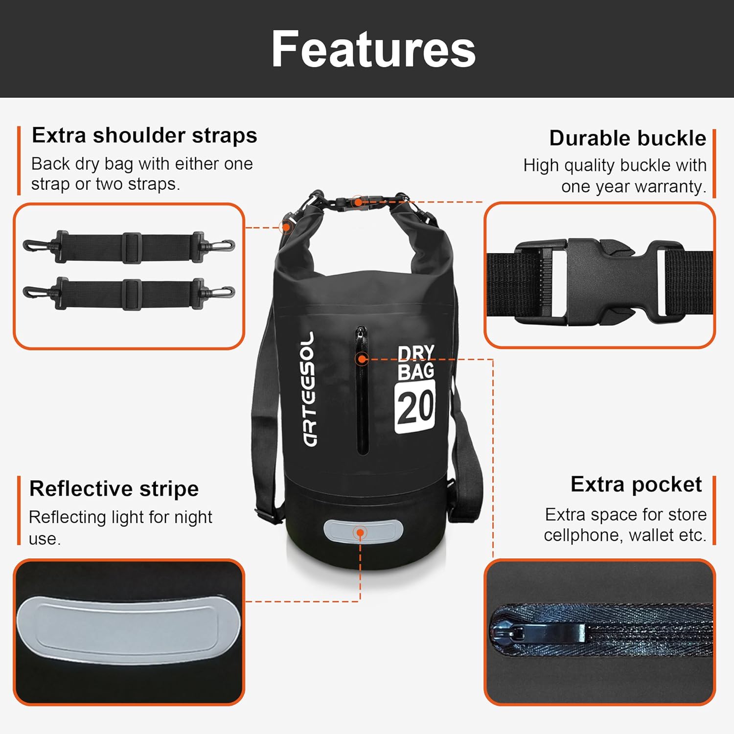 CABLE TECHNOLOGIES - Borsa Zaino Impermeabile 20l, Dry Bag Mare 20 Litri, Sacca Impermeabile Con Tracolla Regolabile, Zaino Waterproof Per Barca Pesca Rafting Spiaggia Sport Acquatici (verde) - EPRICE