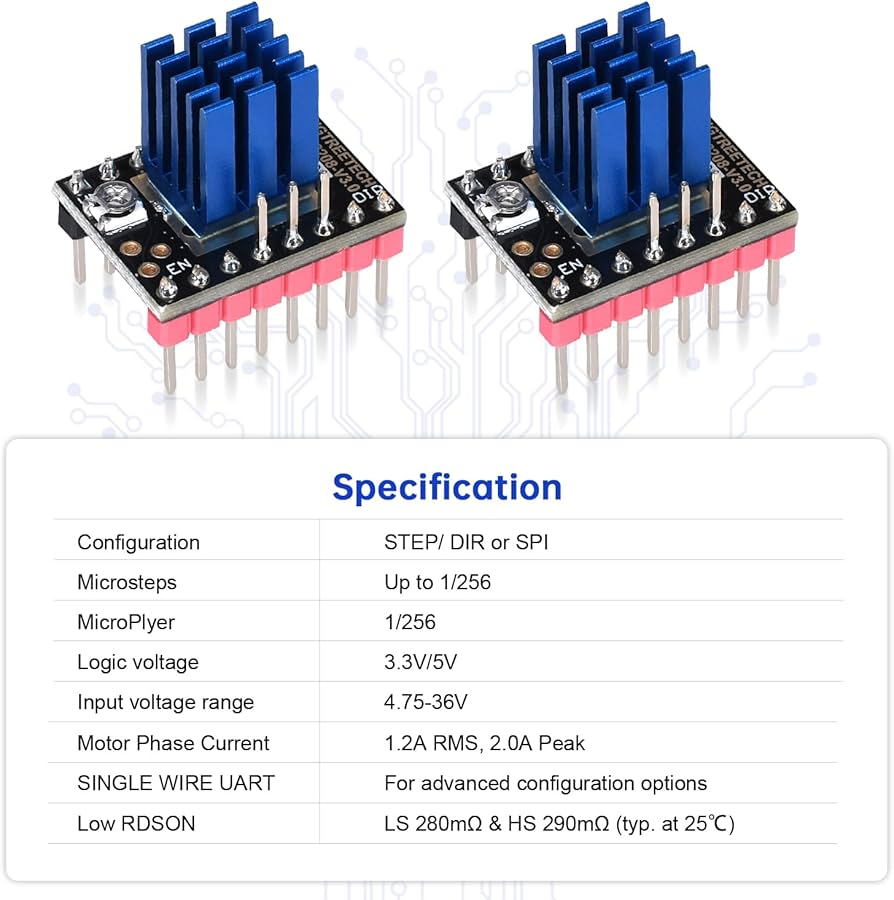 BIGTREETECH TMC2209 V1.3 UART Stepper Motor Driver 2.8A Peak Stepstick Silent Driver For Manta M8P, Octopus V1.1, Octopus Pro, SKR 3, V1. 4 Turbo, Pro V1.2 3D Printer Control Board (4 PCS
