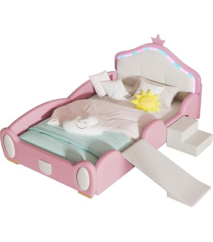 Non superare il peso massimo di 150 kg. Lettino per bambini con unicorno, 90 x 200 cm, con letto estraibile – Rosa cartone animato, cassetti Descrizione + Dimensioni: Materiale letto: PU+MDF. Dimensioni: 90 x 200 cm. Colore: rosa/viola. Descrizione prodotto Descrizione: 90 x 200 cm, lettino a forma di unicorno, dotato di letto estraibile a rotelle, materiale PU Questo letto ha la forma di un unicorno con un design unico e infantile, e la testiera a forma di unicorno è carina e vivace. Lo stile generale del letto è sia elegante che pratico, e si adatta facilmente a una varietà di arredi per bambini, dando al letto una sensazione di divertimento e calore. Avviso di sicurezza Attenzione: Assemblare con cura per evitare lesioni. Fare attenzione agli spigoli vivi. 1. Materiali di alta qualità: questo letto è realizzato in PU e MDF, entrambi i materiali hanno un'eccellente durata e stabilità, non facile da deformare e rompere, per garantire la sicurezza e la durata del letto. 2. Design unico dei cartoni animati: questo letto ha una forma unica a forma di unicorno, che rompe il design monotono della testa del letto tradizionale e rende l'aspetto generale del letto più vivido e bello, in linea con lo stile moderno della decorazione della cameretta dei bambini, può attirare rapidamente l'attenzione dei bambini, stimolare la loro immaginazione e creatività. 3. Design multifunzionale del letto a scomparsa: questo letto è appositamente progettato con un letto estraibile con cassetti sottostanti, che non solo offre un comodo spazio per dormire per i bambini, ma aumenta anche la praticità generale del letto. 4. Facile da pulire e mantenere: il materiale di superficie del letto è facile da pulire, anche se i bambini si sporcano accidentalmente mentre giocano sul letto, possono pulirlo facilmente. 5. Il letto viene spedito in due pacchetti dalla Germania, a volte i pacchetti arrivano in date diverse, ma anche per assicurarsi che le vostre aspettative siano soddisfatte, si prega di avere pazienza o contattare il nostro servizio clienti amichevole. Capacità di peso: 150 kg. Consigliare lo spessore del materasso: 15-20 cm. Dimensioni del prodotto: 203 x 91,5 x 135,5 cm. Letto Neonato Paracolpi Per Lettino - Unicorno 230 Cm - Letto A Casetta Lettino Bambino 3-6 Anni Dimensioni della confezione: si prega di fare riferimento alle specifiche Dimensioni interne del letto: 90 x 200 cm. Altezza complessiva: 135,5 cm. Numero di pacchetti: 2 Montaggio richiesto: sì.