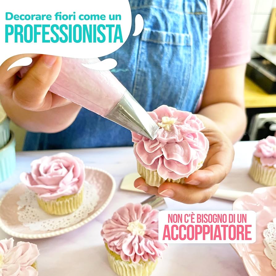 Quantità: 5 diverse punte di aspirazione, una tasca da pasticcere in silicone da 40 cm, Kit da forno fai da te ideale per decorare cupcake, biscotti, caramelle, muffin Farina Caputo Set Da 6-24 Pezzi Borsa Per Pasticceria E Ugello Per Torta In Sac A Poche Professionali Set di borse e punte per Piping K per decorare torte fai da te con ugello in acciaio inossidabile strumenti per decorare torte in Silicone riutilizzabili L'ugello per pasticceria è realizzato in acciaio inossidabile di alta qualità Design: la sac à poche in silicone è adatta a tutte le testine spray. Materiale: sac à poche in silicone, resistente, sicuro ed ecologico. Sac à poche più ecologiche e riutilizzabili eliminano il fastidio di acquistare ripetutamente sac à poche in plastica monouso Le sac à poche riutilizzabili più ecologiche eliminano il fastidio di dover acquistare più e più volte sac à poche di plastica usa e getta. L'esterno ruvido antiscivolo lo rende facile da impugnare Riutilizzabili: le sac à poche in silicone possono resistere a forti pressioni senza rompersi o deformarsi. Quantità: 5 ugelli diversi, una tasca da pasticcere in silicone da 40 cm, Materiale: sac à poche in silicone, resistente, sicuro ed ecologico. Ampia gamma di applicazioni: i sacchetti per pasticceria in silicone e le punte per tubazioni possono soddisfare le vostre esigenze di decorazione di torte e pasticcini. L'esterno ruvido antiscivolo lo rende facile da impugnare RIUTILIZZABILE: le sac à poche in silicone resistono a forti pressioni senza rompersi o deformarsi. L'interno liscio è facile da spremere e pulire.