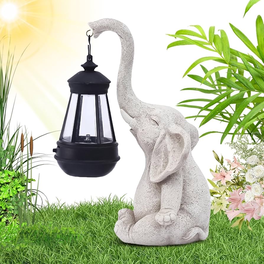 Umikk Elephant - Statua Decorativa Con Lanterna Solare, 25,5 Cm, Con Luce Solare, Decorazione Per Giardino, Resistente Alle Intemperie, Per Donne