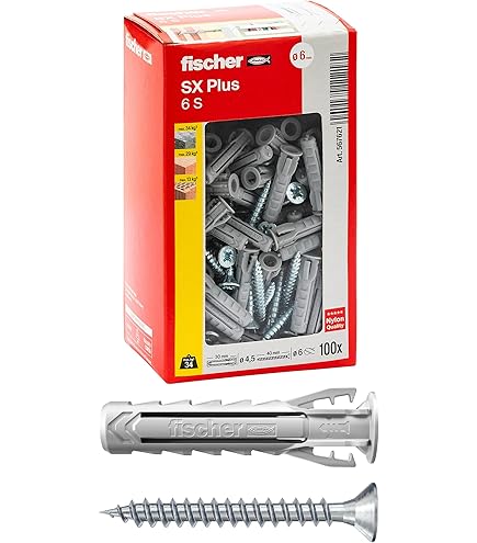È possibile percepire con certezza quando il fissaggio è installato perfettamente Prodotto 1: Due componenti per valori di carico più elevati e funzionamento intelligente (espansione, piegatura, annodamento) in funzione del materiale di supporto DuoPower 6 x 30 S Tassello con vite testa svasata piana e impronta PZ 2Materiali di supporto Calcestruzzo Mattone pieno in laterizio Mattone pieno in sil. ... CONFEZIONE DA 100 PZ. DuoPower 6 x 30 S - Tassello con vite testa svasata piana e impronta PZ 2 Tasselli Per Mattoni Forati Fischer Uv 6 S, Secchiello Con 250 Tasselli Con Vite, Misura 6 X 30 Mm & 50 Tasselli Duopower Con Vite, 8 X 40 Mm, Per Muro Pieno Tasselli Fischer 8 Prodotto 2: Materiali di supporto: Murature piene, Murature forate, Cartongesso, Lastre È possibile percepire con certezza quando il fissaggio è installato m Prodotto 1: Il miglior feedback possibile nel serraggio. Prodotto 2: Due componenti per valori di carico più elevati e funzionamento intelligente (espansione, piegatura, annodamento) in funzione del materiale di supporto Prodotto 1: Diametro: 6 mm; profondità minima del foro: 45 mm; lunghezza tassello: 30 mm, Spessore massimo fissabile: 10 mm