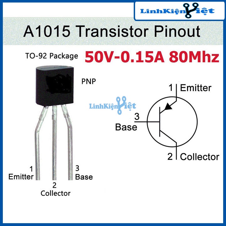 Item description from the seller · Silicon Transistor · f=80MHz beta: 120~240 · Vceo: 50V · Ic (Max): 150mA · Ptot(mW): 400 mW · Case: (TO-92) package 2sa1015 Y Spec Sheet 2SA1015 Transistor 0.15A/50V TO92 A1015 Transistor Pinout