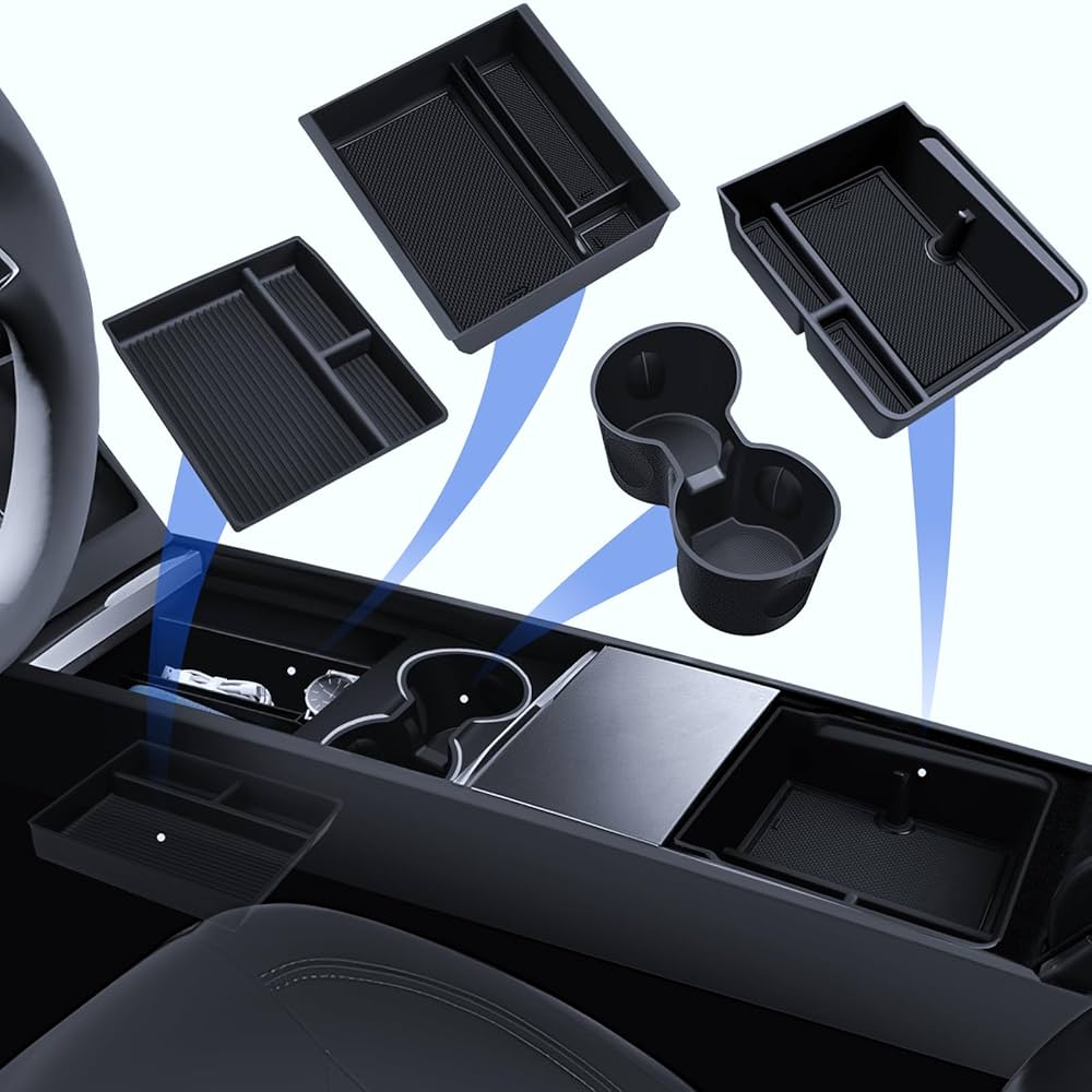 TOPABYTE Organizer Per Tesla Model Y Juniper 2025 Model 3 Highland 2024 Console Centrale Vano Portaoggetti Bracciolo Portabevande Organizzatore Scatola Portaoggetti, 3PCS : Amazon.it: Auto E Moto