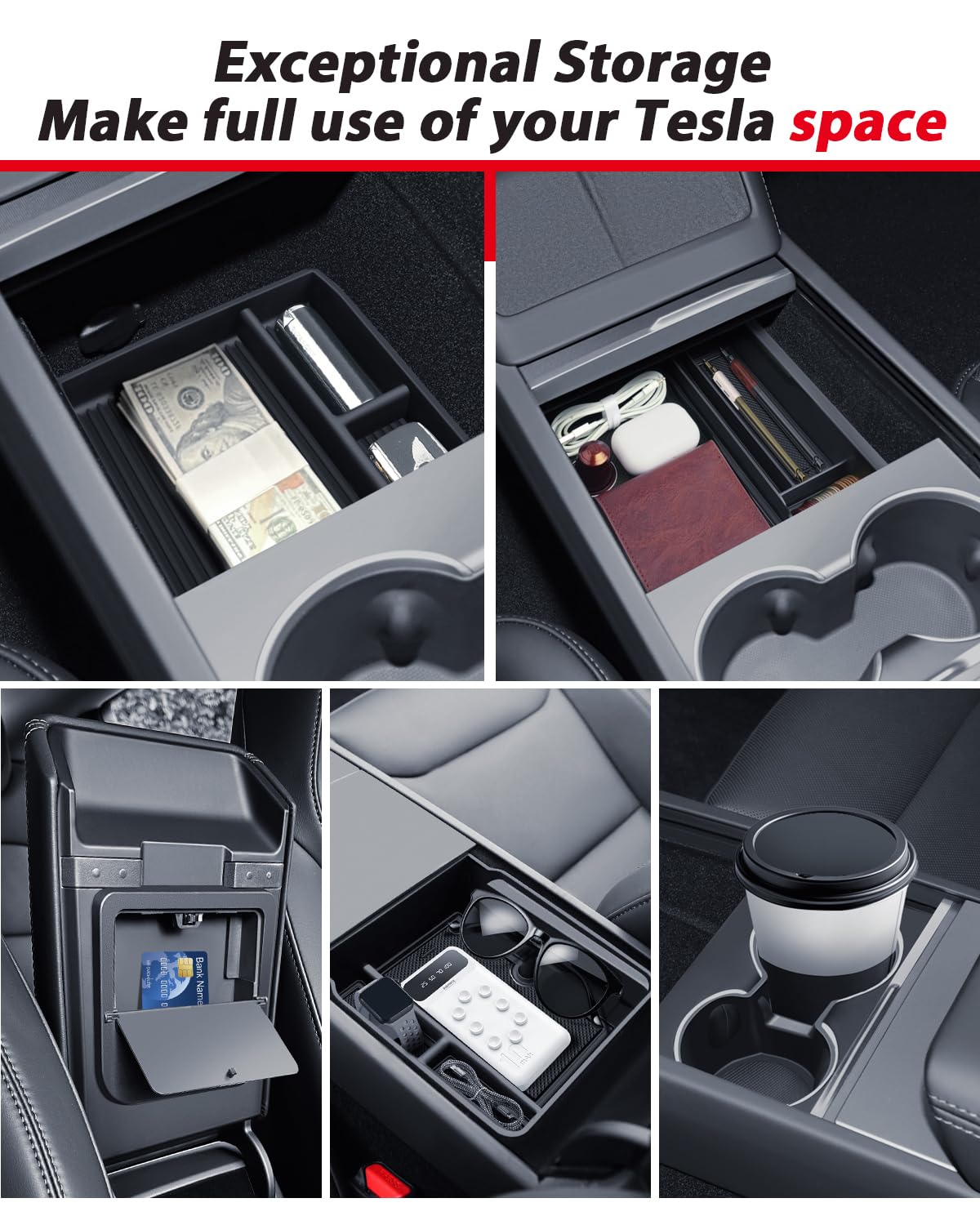 L'installazione richiede solo un minuto e non necessita di strumenti aggiuntivi. Conservazione Eccellente: L'organizer e la scatola per bracciolo offrono un ordine perfetto per occhiali da sole, cuffie, monete e molto altro. LANTU 4 Pz Accessori per Tesla Model 3 2024-2025 Organizer della Console Centrale, Vassoio in Silicone, Scatola di Conservazione per Bracciolo e Portabicchieri della Console Centrale Parasole TOPABYTE Organizer Per Tesla Model Y Juniper 2025 Model 3 Highland 2024 Console Centrale Vano Portaoggetti Bracciolo Portabevande Organizzatore Scatola Portaoggetti, 3PCS : Amazon.it: Auto E Moto Tesla Model 3 Qualità Superiore: Il set di 4 accessori Tesla LANTU è realizzato in ABS di alta qualità e silicone morbido, rendendolo sicuro, ecologico, durevole e impermeabile. Cosa Ricevi: Organizer per console centrale LANTU Tesla x1, vassoio in silicone x1, scatola portaoggetti per bracciolo x1, portabevande x1, 24 mesi di garanzia e supporto tecnico professionale a vita. I portabevande impediscono che le bevande si rovescino e sporchino l'interno dell'auto, migliorando l'esperienza di guida. È facile da rimuovere e lavare. Il set completo da 4 pezzi ti aiuta a organizzare meglio la tua Tesla.