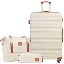 Joyway Set Di Valigie 3 Pezzi A Guscio Duro Con 4 Ruote E Chiusura TSA Il Set Di Valigie Contiene 1 Valigetta Per Cosmetici E 1 Borsa Portatile Marrone/ Bianco : Amazon.it: Moda