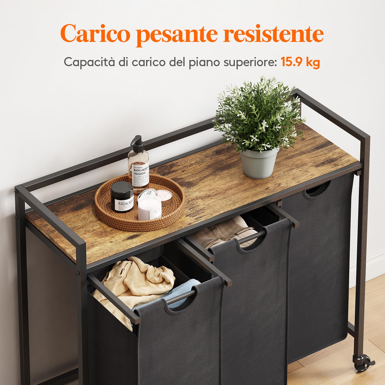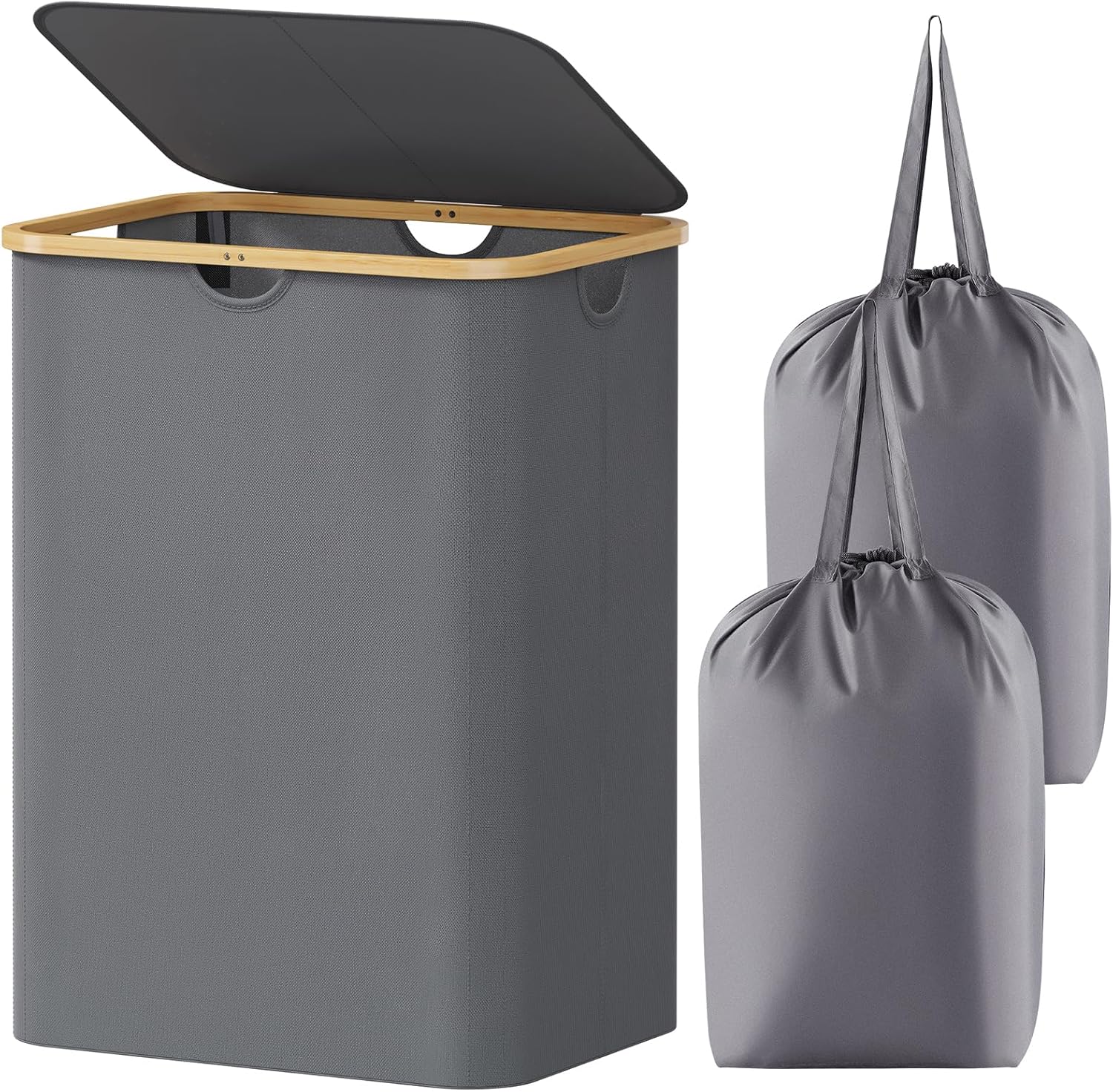 Lifewit Cesto Portabiancheria 3 Scomparti 150L, Grande Porta Panni Sporchi Con 3 Borsa Rimovibili E Manico, Cesta Portabiancheria Sporca Per Lavanderia, Camera Da Letto, Bagno, Beige