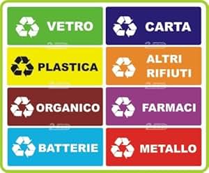 3 TARGHETTE ADESIVE RACCOLTA DIFFERENZIATARIFIUTI,CONTENITORE