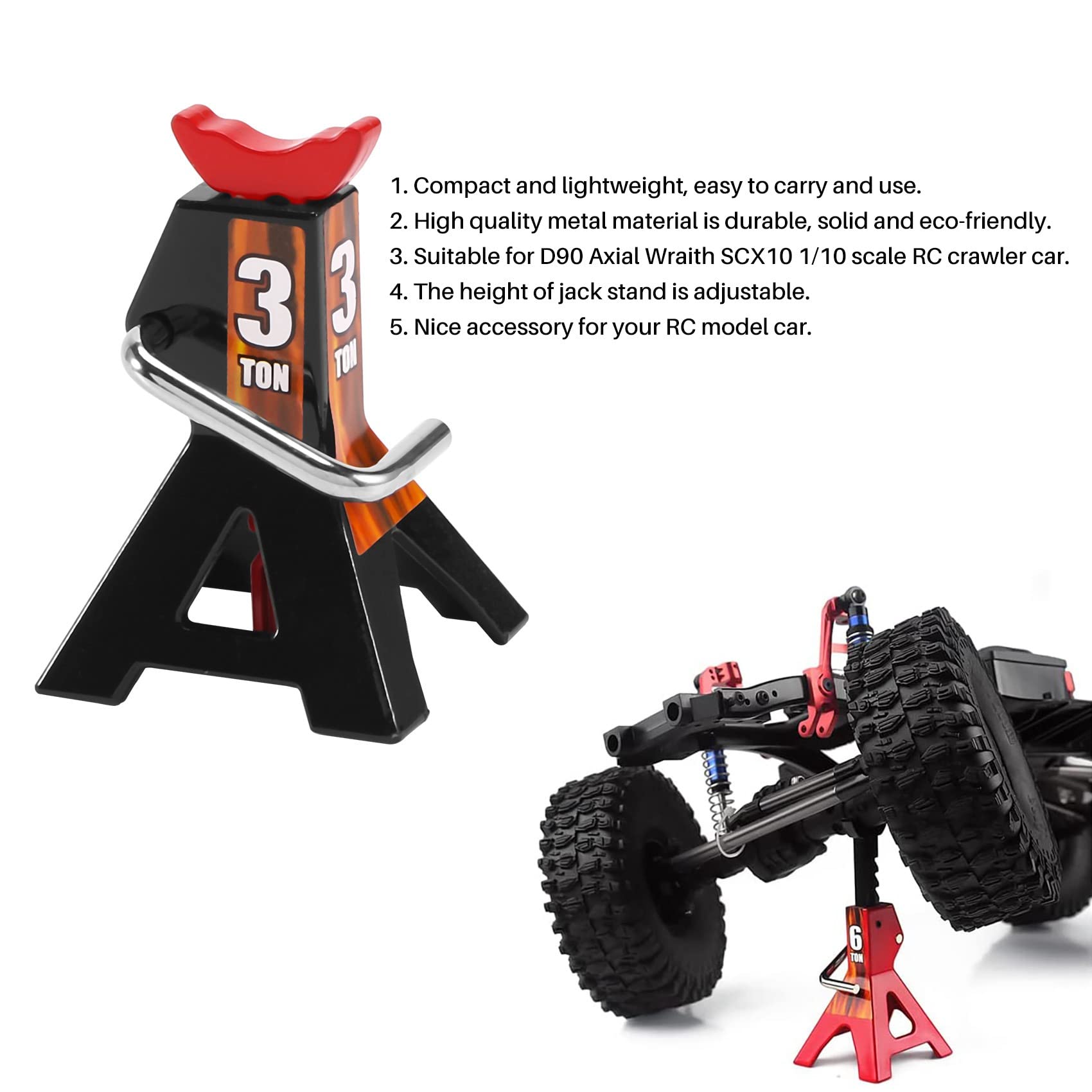 Feriany 4 Pezzi Metallo 3 Tonnellate Simulato Cric Alte Regolabile Riparazione Supporto Scena Strumento Jack Per 1/10 TRX4 D90 CC01 RC Arrampicata Auto Rosso (Modello Giocattolo) : Amazon.it: Giochi E Giocattoli