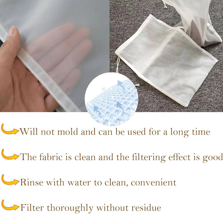 Realizzati in resistente rete di nylon alimentare di alta qualità, questi sacchetti sono progettati per fornire capacità di filtraggio superiori senza il disordine della garza. Colino Di Cotone 4 Panni Da Formaggio Per Scolare, 30 X 20 Cm, In Nylon, Per Latte E Panni Cucina Materiale: plastica nylon + cotone. Dimensioni della confezione: 27 × 20 × 1,9 cm. 4 panni da formaggio per scolare, 30 x 20 cm, in nylon, per latte e frutta secca, riutilizzabili, per formaggio , latte noci, sacchetti a rete fine per cucinare, cuocere, spremere, fare formaggio È possibile sospendere in modo sicuro il filtro a sacco da un contenitore o una caraffa frullatore per facilità d'uso. Inoltre, il bordo esterno del filtro per succo è più facile da pulire. Descrizione del prodotto: I nostri sacchetti filtro per latte di noci sono il compagno di cucina perfetto per persone attente alla salute. Ampia applicazione: la nostra garza per filtrare è incredibilmente versatile, consentendo di filtrare un'ampia varietà di bevande e alimenti, tra cui latte, caffè, latte di soia, succhi di frutta, latte di riso, vino di frutta, tofu e noci. Forte bordo di rilegatura esterno: il sacchetto di stoffa per formaggio per filtrare presenta bordi esterni che sono più forti di una semplice cucitura cucita. Ogni confezione include quattro sacchetti, ciascuno misura 30x20 cm, rendendoli versatili e pratici per una vasta gamma di usi. Con forti bordi di rilegatura, comode coulisse e una rete fine che garantisce un filtraggio efficiente, questi sacchetti riutilizzabili sono ideali per fare latte di noci, succhi di frutta e altro ancora. Specifiche tecniche: Categoria: Sacchetto filtro Colore: bianco. Dimensioni del prodotto: 30 x 20 cm. Contenuto della confezione: 4 sacchetti per filtro per latte a dadi. Regalo premuroso: questi sacchetti riutilizzabili per il latte sono un regalo premuroso e pratico per amici, familiari o chiunque ami cucinare. La loro convenienza ed efficienza nel filtrare vari alimenti in modo rapido ed efficace rendono la borsa a rete del latte di noce uno strumento essenziale da cucina, sicuramente apprezzata da chiunque ami preparare bevande e piatti sani e fatti in casa.