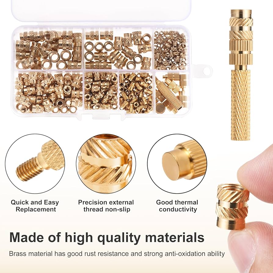 Inserti Filettati Per Legno 300 Pz M5 M6 Calore Inserto Filettato Dadi In Ottone Hot Melt Stampaggio Zigrinato Metallo Rame Dado Di Bloccaggio For Stampante 3D Dado Hot Melt Stampante 3d Metallo Sono elementi di fissaggio spesso utilizzati nella stampa 3DSpecifica:Prodotti: Noci Hot MeltMateriale: ottone internazionaleInformazioni sui colori:A causa della differenza tra i diversi monitor, l'immagine potrebbe non riflettere il colore effettivo dell'articolo. I dadi zigrinati in metallo sono costruiti e costruiti con precisione per soddisfare tutte le esigenze applicative. La gamma di dadi zigrinati è disponibile anche con varie opzioni di placcatura, rivestimento e finitura tra cui cromo, ottone al nichel, zi Materiale: Questi dadi zigrinati filettati femmina sono realizzati in ottone con un'eccellente resistenza alla ruggine e all'ossidazione per garantire un utilizzo a lungo termine Buona lavorazione: i nostri dadi sono tutti realizzati secondo gli standard, con filettatura chiara e profonda, piccole tolleranze, forme rotonde standard. La superficie del dado è pulita e priva di sbavature e non danneggia altre parti Ampio utilizzo: i dadi filettati sono ampiamente utilizzati nello stampaggio a iniezione per il fissaggio e possono essere installati in fori conici mediante ultrasuoni o riscaldamento o durante il processo di stampaggio a iniezione Processo Di Produzione Unico: L'elevata durezza e tenacità ne rendono difficile la lavorazione e complicato il processo produttivo