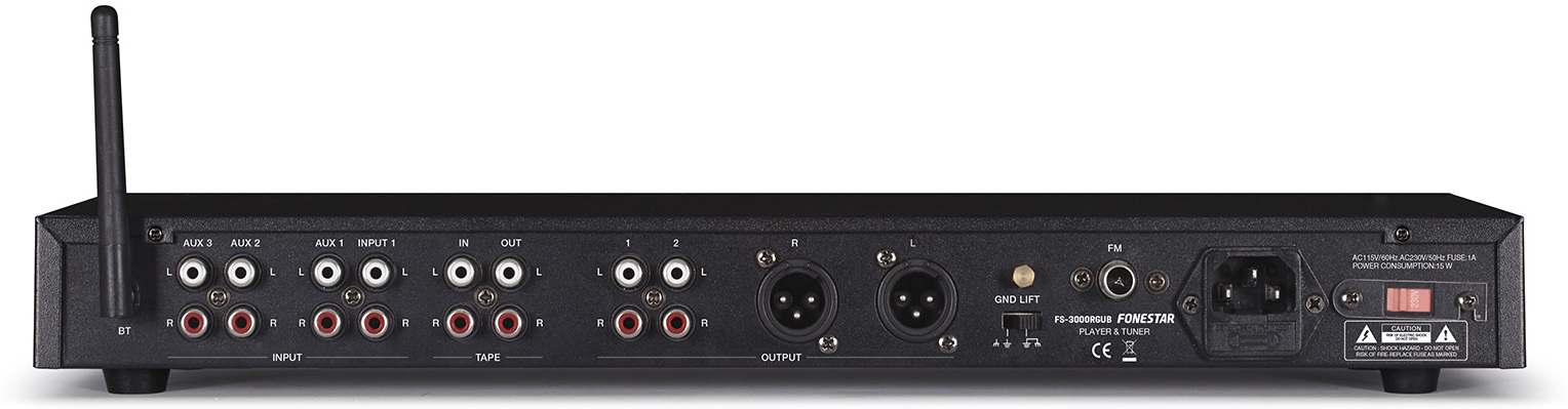 FONESTAR FS-3000RGUB USB/SD/MP3/FM/BT Mixer Adapter Fonestar FS-3000RGUB Reproductor USB/SD/MP3/FM/BT Mezclador. FONESTAR FS - 3000RGUB MIXER/PLAYER is a multifunctional MP3 / SD / USB mixer/player designed to offer various audio solutions in a single compact device. Technical features include media player function: it supports the playback of MP3 files from USB sti Montaje en Rack Reproductor mezclador. Prodotto originale di marca. Tre anni di garanzia contro difetti di fabbrica. 1 U rack 19 Peso 1,5 Kg Accesorios Soportes para montaje en rack 19 Antena AM y FM Reproduce música desde smartphones, tablets y otros dispositivos bluetooth.