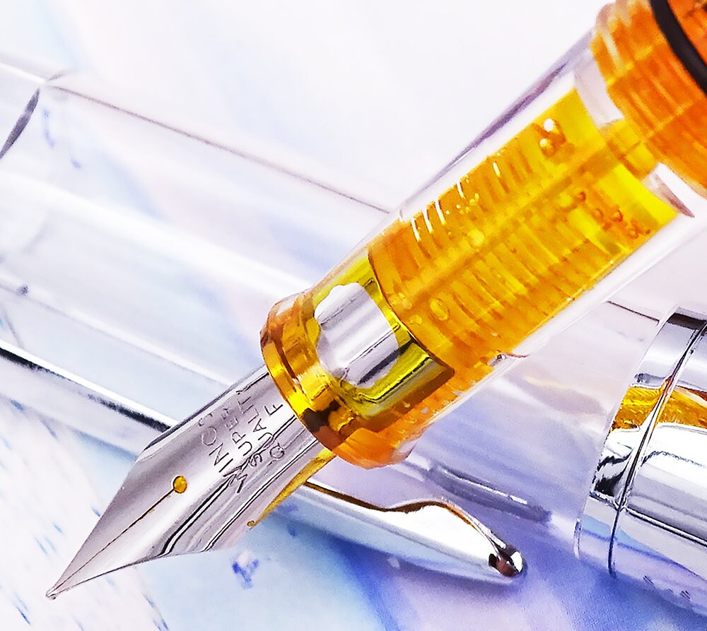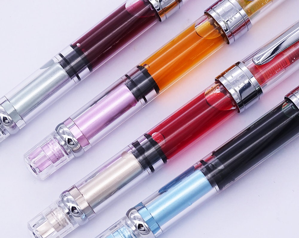 3008A Penna Stilografica A Pistone 4 Colori, Pennino Fine Con Finiture Dorate
