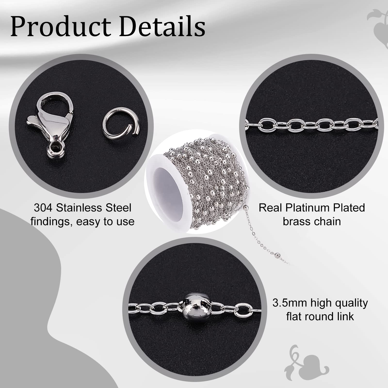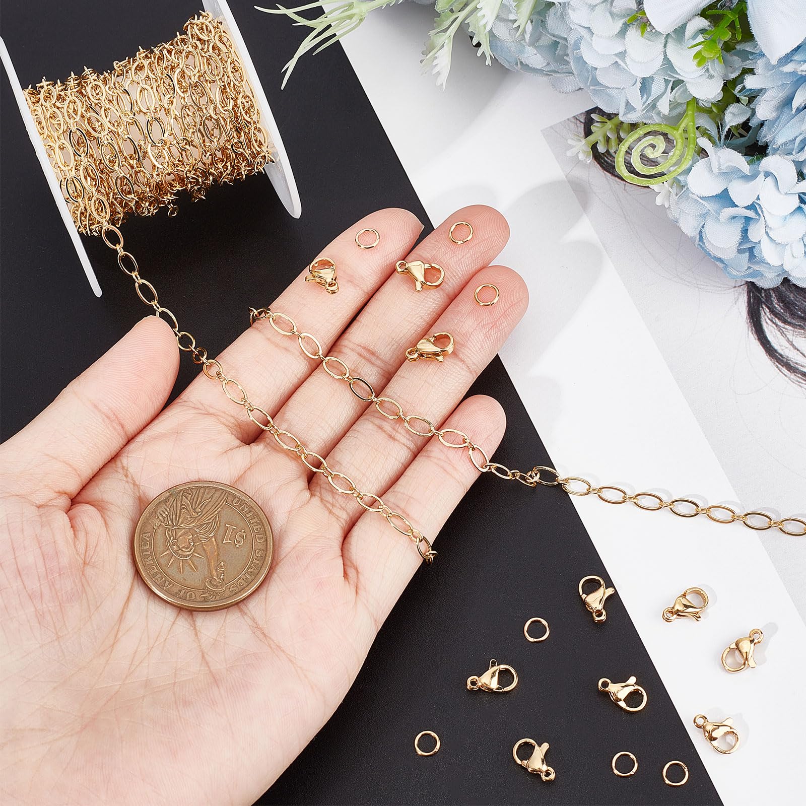 Beebeecraft Catene A Maglie A Onda Intrecciata Da 5 M 304 Catene A Maglie Per Cavi In Acciaio Inossidabile Con 20 Chiusure A Moschettone E 50 Anelli Per Saltare Aperti Creazione Di MATERIALI PER LA CREAZIONE DI GIOIELLI:Ci sono 1 catena a graffetta e 10 fermagli a moschettone e 30 anelli di congiunzione forniti con una scatola di plastica per la conservazione. acciaio inossidabile catena gioielli DIMENSIONE:La catena di graffette è lunga 2 m/6.56 piedi, l'anello di collegamento è 8.5 x 3 x 0.5mm (0.33 x 0.12 x 0.02 pollici). FAI DA TE:puoi usarlo per realizzare collane semplici o complicate, e puoi anche usarlo con diversi stili di accessori per creare braccialetti, Portachiavi, cavigliere, e così via. Usa la tua immaginazione per creare i tuoi gioielli 2 metro di lunghezza è più che sufficiente per tentativi ed errori e per combinare collane o bracciali in ogni stile possibile FACILE DA USARE:puoi facilmente tagliarlo alla lunghezza desiderata, attaccare i ciondoli con l'anello di congiunzione e attaccare una chiusura a moschettone all'estremità, quindi puoi indossarlo.