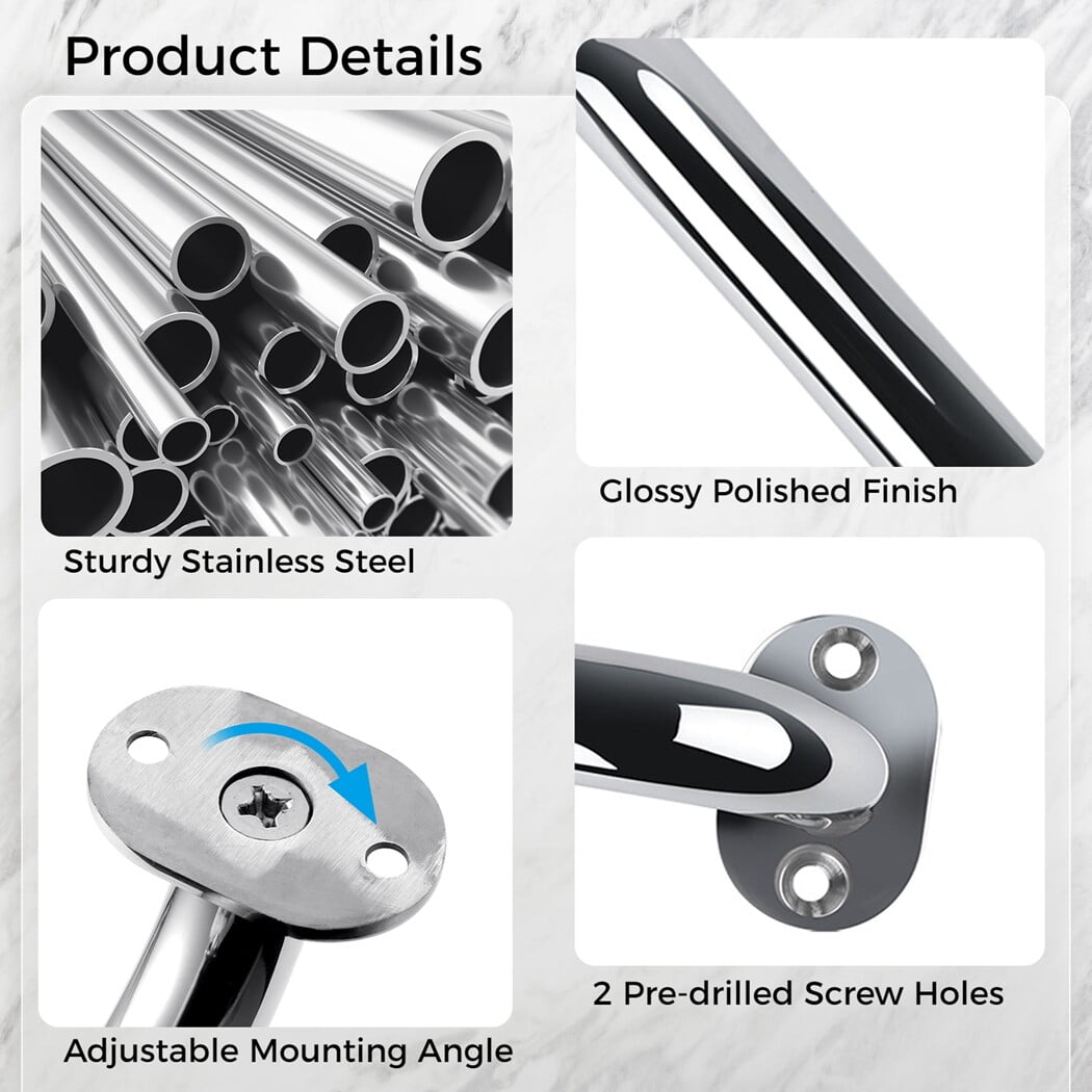 ISURE MARINE Boat 316 Stainless Steel 8-3/4'' Boat Polished Grab Handle Oval Tube Grab Bar Handrail For Marine Yacht RV