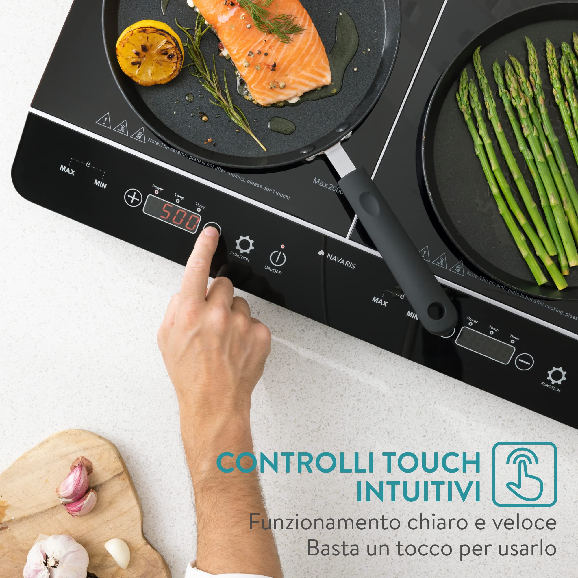 Il fornello a induzione può terminare la cottura in meno tempo. Piano Induzione 5 Fuochi Piano Cottura A Induzione Professionale Con Piano Di Lavoro, Fornello A Induzione Da 3500 W Per Cottura Precisa 8 Livelli Di Regolazione Della Temperatura Per Cottura Rapida Per Cucine E Camper Fornello Elettrico 1 Piastra È più sicuro da usare. Cassa in acciaio inox: la cassa in acciaio inossidabile è impermeabile, quindi è più sicura per l'uso. Klarstein Piastra a Induzione , Piano Cottura 3500w , Fornello Elettrico con Controllo Smart Touch, 2 Fuochi con Display Digitale e Timer, 240v Dimensioni: 44,5 x 35,5 x 11 cm. Peso netto: 5,5 kg. Specifiche: Tensione: 220 V, 50 Hz. Potenza: 3500 W. Diametro interno: 30 cm. Descrizione Il fornello a induzione con il telaio in acciaio inossidabile è più resistente e può durare a lungo. Da incass Non è necessario installare il prodotto. Utilizzo: Adatto per piccole cucine, case, uffici, studi, camper, dormitori, hotel, ristoranti, ecc. Dettagli: Cuscinetti anti-vibrazione: i piedini con cuscinetti anti-vibrazione hanno un ottimo effetto anti-shock e assorbimento degli urti per ridurre il rumore. È adatto per piccole cucine, case, uffici, studi, camper, dormitori, hotel, ristoranti, ecc. Pulsanti impermeabili: non c'è bisogno di preoccuparsi che i tasti fuoriescano e causino problemi di sicurezza anche in caso di contatto con l'acqua. Timer: è possibile preimpostare il tempo di funzionamento di un particolare modello in modo che si spenga automaticamente in un determinato momento, il che è più conveniente e più conveniente per risparmiare manodopera. Grazie alla cassa in acciaio inossidabile, può essere facilmente pulito. Cottura rapida: 3500 W funzione di cottura one-touch e grande fuoco cottura veloce, è possibile cuocere rapidamente in un tempo più breve. Design a quattro ventole: due ingressi e due uscite con grandi condotti d'aria accelerano la dissipazione del calore, in modo che il fornello a induzione funzioni senza problemi e prolunga la sua durata anche con 24 ore di funzionamento continuo.