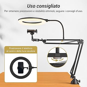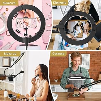 Luce ad anello a LED con telecomando Bluetooth che consente di scattare foto a distanza. 1 Video in Diretta 2 Registrazione Video 3 Luce del Trucco 4 Video Conferenze 5 Fotografia del Prodotto Basta collegare la luce ad anello USB a una fonte di alimentazione come un PC, laptop o un caricabatterie portatile tramite la porta USB e goditi il flusso luminoso uniforme di 10 W, incrollabile e costante. La nostra luce ad anello overhead è la vostra risposta definitiva. 【Servizio clienti e contenuto della confezione】: se avete domande sulla nostra luce ad anello con supporto e supporto per telefono, non esitate a contattare il nostro team di professionisti, riceverete una risposta soddisfacente e una soluzione entro 24 ore; elenco incluso: 1 luce ad anello, 1 treppiede pieghevole da scrivania, 1 supporto per telefono, morsetto C x1, testa sferica da 1/4, morsetto a filo x4, chiave esagonale di tipo L x1. . 130 luci LED a doppia fila; Gamma di temperatura del colore: 2700K-5500K; 3 modalità di illuminazione a colori; 10 livelli di luminosità; Il morsetto a C si monta saldamente su qualsiasi superficie piana dello spessore di 2,36 dove è possibile inserirlo. 【Supporto flessibile e stabile con telecomando】: la nostra luce ad anello con treppiede è realizzata in lega di alluminio, con un braccio girevole ergonomico e può contenere 3 kg. La luce anulare soddisfa le vostre esigenze in qualsiasi angolazione, è un'ottima luce selfie per foto e video. Il telecomando wireless consente di scattare foto e girare video con facilità da una distanza massima di 30 metri. Morsetti a C rigidi 【Multifunzioni】: siete stanchi di illuminazione insufficiente per la fotografia o lo streaming dal vivo? Non cercare oltre. APEXEL 10'' Ring Light con Supporto per Telefono, Ring Light Professionale da Tavolo, Lampada per Videoconferenza con Braccio Regolabile per Telefono TikTok Trucco Fotografia Youtube Video 【Luce ad anello LED dimmerabile da 10 pollici】: la luce ad anello da scrivania da 10 è alimentata da 130 luci LED a doppia fila. Accessori Telefono APEXEL 10'' Ring Light Con Supporto Per Telefono, Ring Light Apexel Ring Light Amazon Testa fissa girevole a 360° e testa a sfera da 1/4, che lo rende facile da gestire qualsiasi angolo di ripresa. Completo di una testa a sfera universale da 1/4 attaccata a un supporto per cellulare, garantisce una completa compatibilità con telefoni cellulari, fotocamere leggere, webcam e microfoni, una soluzione per tutte le tue sfide di creazione di contenuti. Se state trasmettendo in diretta streaming, scattando qualsiasi tipo di foto o video, Apexel Ring Light con braccio regolabile può essere il vostro braccio destro