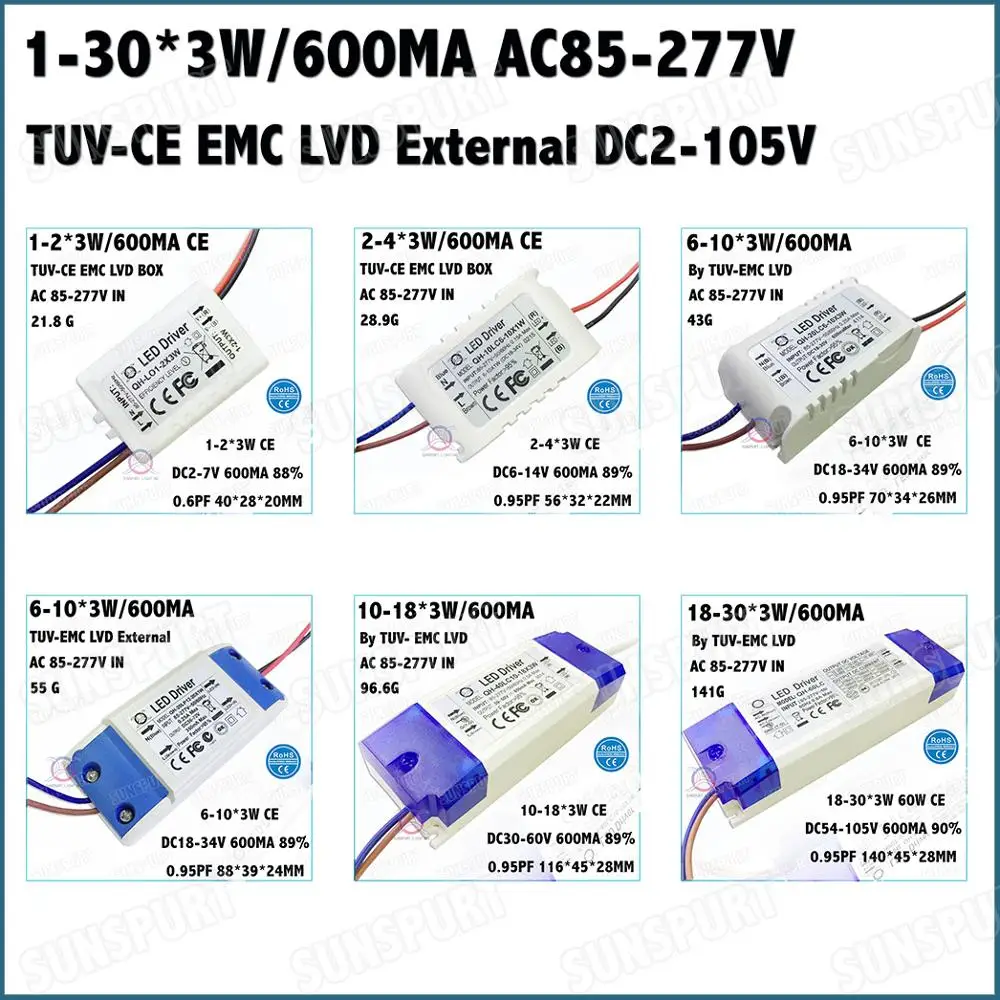 Low-Voltage Transformers Power: 3W-60W Input Voltage: AC85-277V Current: 600mA ± 5% Package Include: 1pcs 600mA LED Driver Product information Technical Details Transformateur D'éclairage,Pilote LED à Courant Constant,haute PF,600ma,transformateur D Materiale di alta qualità,lunga durata da usare,prodotto eccellente