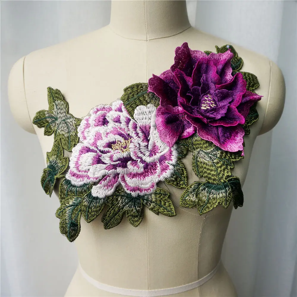 GORGECRAFT 2 Pz Fiore Di Perle Ricamo Toppe In Pizzo 3D Floreale Bianco Floreale Ricamato Cucire Su Appliques Pizzo Tessuto Passamaneria Per Copricapo