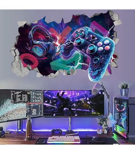 Wondever Adesivi Murali 3D Gamer Sticker Da Muro Sala Giochi