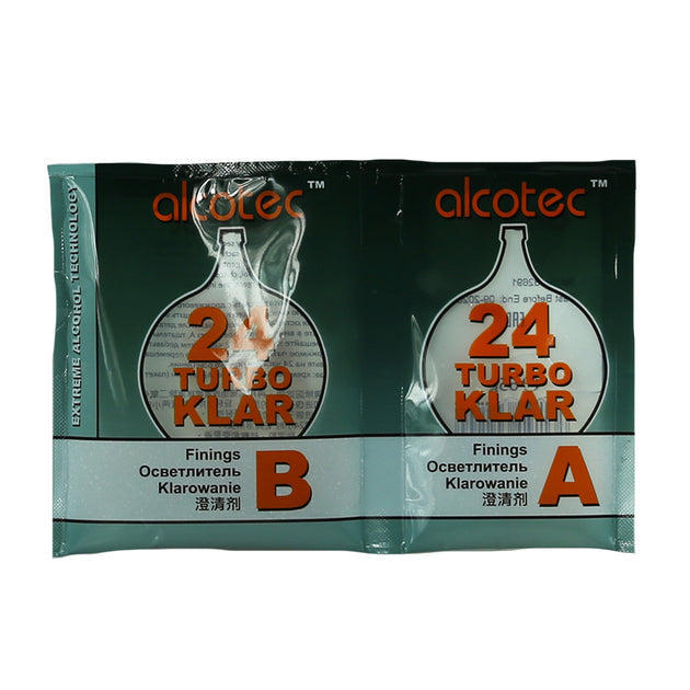 3x Alcotec TurboKlar 24hr Finings For Clearing Homebrew 2 parti 24hr Super Finings di Alcotec Progettato appositamente per lieviti turbo Product Description 5x Alcotec ExtraKlar 24hr Finings . 135g for clearing 25L Homebrew Turbo, Wine, Beer, Cider. Larger than regular TurboKlar . Use this for stubborn brews. Clears better than regular finings or clearing agents. Easy to use, quick to clea Più grande e più potente rispetto al normale TurboKlar.