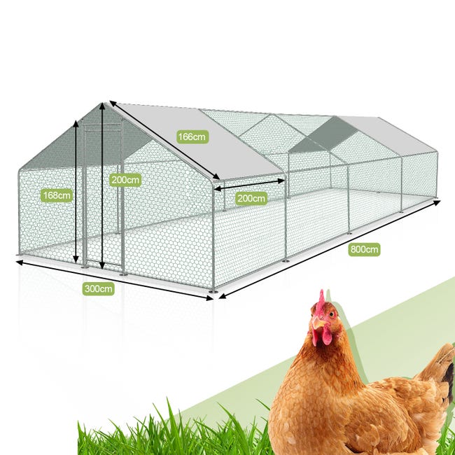 Recinto per pollaio, colore: argento, diametro tubo: 22 mm, spessore: 0,7 mm, materiale: acciaio zincato, dimensioni complessive: 5 x 1 m/4 x 1 m/3 x 1 m/ 2 x 1 m, adatto per polli, anatre, conigli, ecc., con tetto impermeabile. Adatto non solo per l'allevamento di polli, ma anche molto buono per l'allevamento di conigli, anatre e altri piccoli animali. Recinto Per Galline Recinto Per Conigli FIVMEN Recinzione Per Pollaio 3x4x2 M Recinto Pollaio In Metallo 12 M² Gabbie Per Pollame Con Tetto Di Protezione Solare, Porta E Sbarre Recinto Esterno Gabbie Per Polli Stalle Recinto Per Polli Domestici Prodotti Consigliati per le Recinzioni dei Pollai Rete Capo Horn La rete Capo Horn è una delle soluzioni più consigliate grazie all'ottimo rapporto qualità-prezzo. Si tratta di una rete a rotoli con maglia sciolta e romboidale, con dimensioni della maglia Il telone parasole sulla parte superiore protegge dalla pioggia e dalla luce del sole e garantisce un ambiente di vita confortevole per il pollame. Pulito e igienico: le pareti del pollaio sono costituite da recinzione esagonale in rete metallica che impedisce la fuoriuscita del pollame. Gabbie multiuso: il pollaio offre ampi spazi per animali di piccola e media taglia con un sacco di spazio per giocare e riposare. [Facile da installare] Il telaio complessivo del pollaio è realizzato con tubi metallici di alta qualità. Il telo parasole sulla parte superiore protegge dalla pioggia e dalla luce solare. Con serratura di sicurezza: la porta del pollaio è comoda per l'alimentazione e la gestione quotidiana. Vantaggi: [Pulito e igienico] Le pareti del pollaio sono realizzate in rete metallica esagonale con rivestimento in PVC che impedisce al pollame di fuoriuscire e allo stesso tempo fornisce una ventilazione quotidiana per evitare l'umidità e la crescita batterica a causa della scarsa circolazione dell'aria. Dati tecnici: Colore: argento. La serratura della porta può proteggere pollame e animali domestici dai predatori. [Con serratura di sicurezza] La porta del pollaio è comoda per l'alimentazione e la gestione quotidiana.
