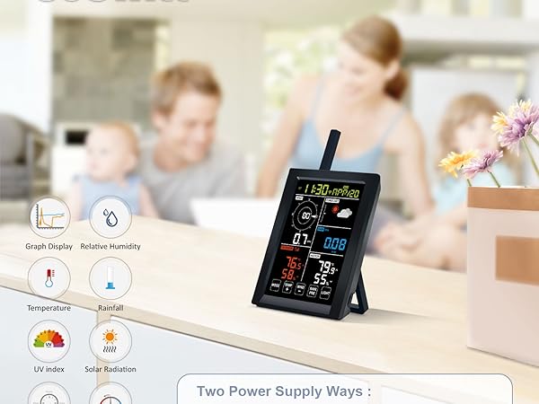 Ecowitt WN1920_C Wi-Fi Console, 4.9 LCD Display, With Built-in Indoor Temperature, Humidity And Barometric Sensor Antenna