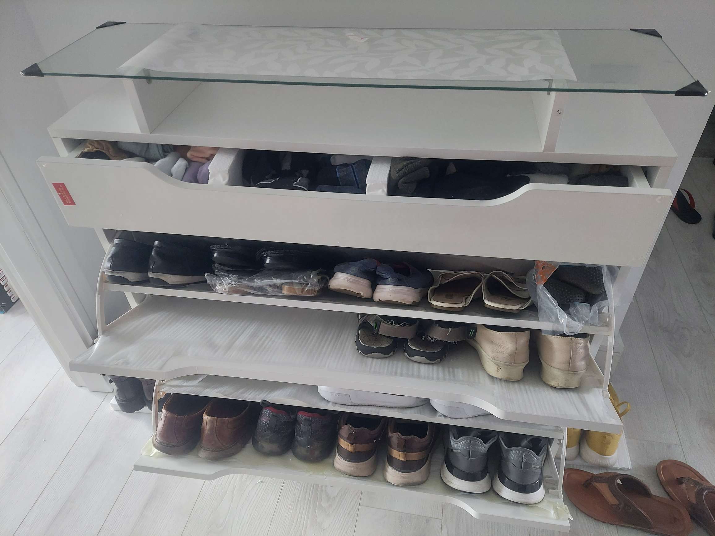 ELEGANTE E MODERNA: La finitura bianca dona un tocco moderno e minimalista. MENSOLA REGOLABILE: Ogni cassetto porta scarpe è dotato di una mensola regolabile su 2 livelli per riporre diversi tipi di calzature. CASSETTI RIBALTABILI: Ogni cassetto di questa scarpiera moderna include un ripiano regolabile su due altezze. Misura massima consentita delle scarpe: EU 44. SUPERFICIE PIATTA: Il piano d'appoggio del nostro mobile scarpiera offre spazio supplementare per Mobile Ingresso HOMCOM Scarpiera Salvaspazio 4 Cassetti Con Mensola Regolabile Per 16 Scarpe Scarpiera Salvaspazio Slim Versatile e adatta per ogni ambiente, puoi usarla come scarpiera per ingresso, in camera da letto o in soggiorno. Dimensioni generali: 70L x 29P x 92Acm. Montaggio richiesto. STRUTTURA SOLIDA: Realizzata con pannelli in legno truciolare di alta qualità, questa scarpiera salvaspazio è solida e affidabile. SALVASPAZIO: I 2 cassetti porta scarpe con apertura a ribalta riducono l'ingombro. AMPIA CAPACITÀ: 2 cassetti porta scarpe a ribalta, un cassetto e un piano d'appoggio ti offrono lo spazio di cui hai bisogno per tenere tutto in ordine.