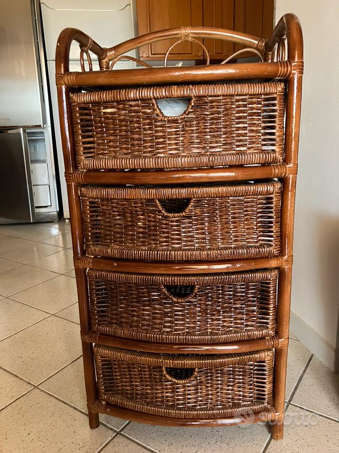 Cassettiera Mobiletto Bagno 4 Ceste 4 Cassetti Legno Vimini Urban