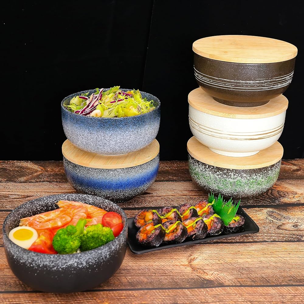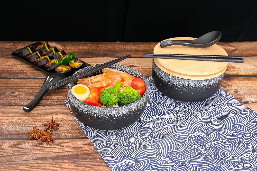 Set Di 4 Ciotole Di Ramen (16 Pezzi), Zuppa Giapponese Asiatica Sushi Set Quantità sufficienti possono coprire l'uso quotidiano e la sostituzione. Questo set di ciotole per ramen include una classica ciotola per ramen in stile giapponese, con coperchio in legno, bacchette e un cucchiaio. Con questo set, il tuo ramen fatto in casa ti sembrerà di mangiare in un ristorante asiatico tradizionale. I nost Queste grandi ciotole per ramen in ceramica sono realizzate in materiale ceramico di alta qualità, sono durevoli e indeformabili, antiruggine e resistenti alla corrosione, affidabili nell'uso, inodori, non facili da rompere, che possono servirti a lungo e portare freschezza e sensazioni culinarie diverse per te e le tue famiglie Il set di ciotole per ramen può essere utilizzato come regalo di inaugurazione della casa, matrimonio e Natale. Ci auguriamo che le nostre ciotole possano condividere la gioia con la famiglia, i colleghi e gli amici. Ciò garantisce che condimenti e zuppe siano saldamente inseriti nella ciotola senza fuoriuscire. La capacità delle nostre ciotole da 1100 ml può contenere porzioni generose.