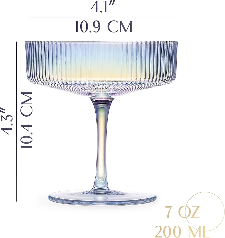GLASSIQUE CADEAU Bicchieri Da Cocktail E Champagne In Cristallo, Set Da 4, Eleganti Bicchieri Da 255 Ml, Per Espresso Martini, Daiquiri, Cosmopolitan, Gimlet | Piattini Rotondi Fantasia
