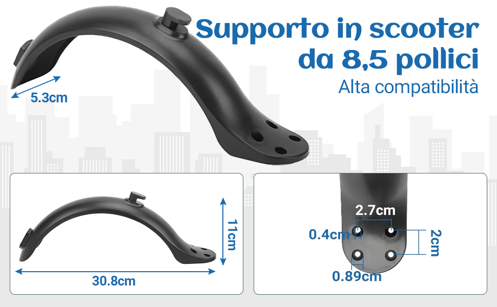 Parafango Monopattino Elettrico Con Luce Stop A LED Happytec - Parafango Posteriore A 4 Fori, Accessori Lexgo, I-Bike, Woow, GoSmart E Altri Modelli, Ricambi Monopattino Stabile E Resistente