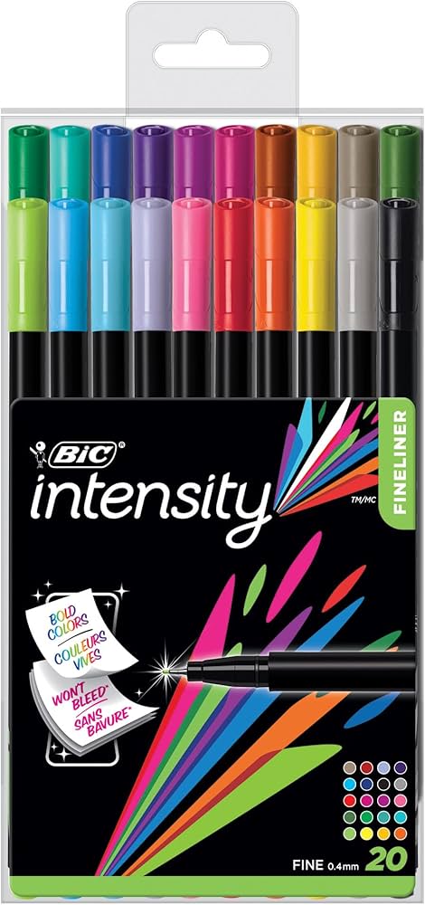 BIC® Intensity - Pennarelli A Punta Fine, 0,4 Mm, Fusto Nero, Colori Assortiti, Confezione Da 20 : Amazon.it: Cancelleria E Prodotti Per Ufficio